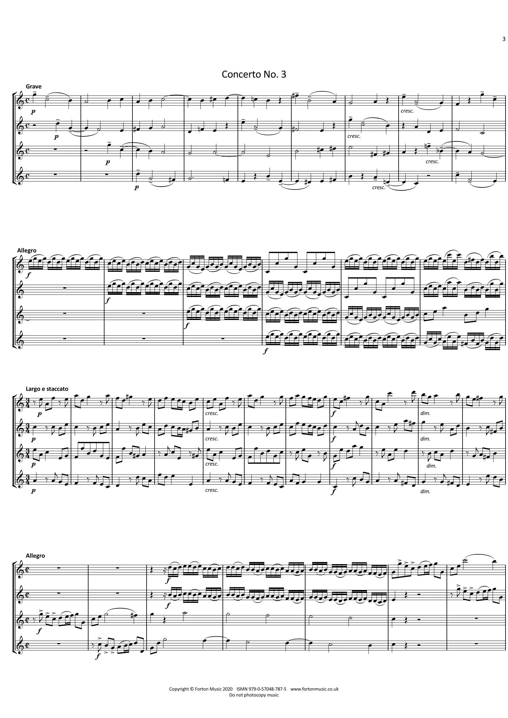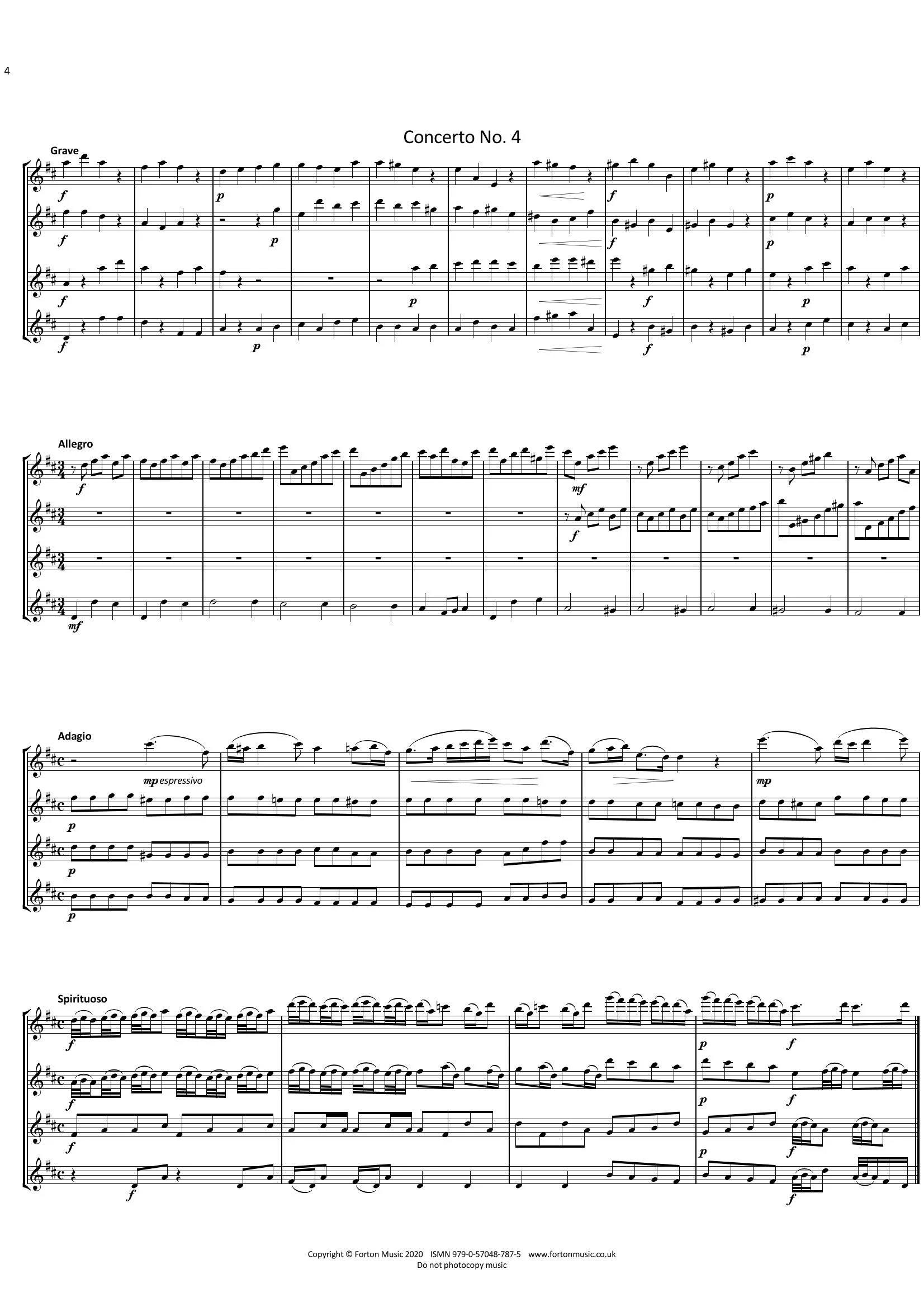 These 4 concerti, each with 4 short contrasting movements are unusual in that they were orginally composed for 4 violins without continuo. All four parts are independant and equal in difficulty, but all contribute musically.