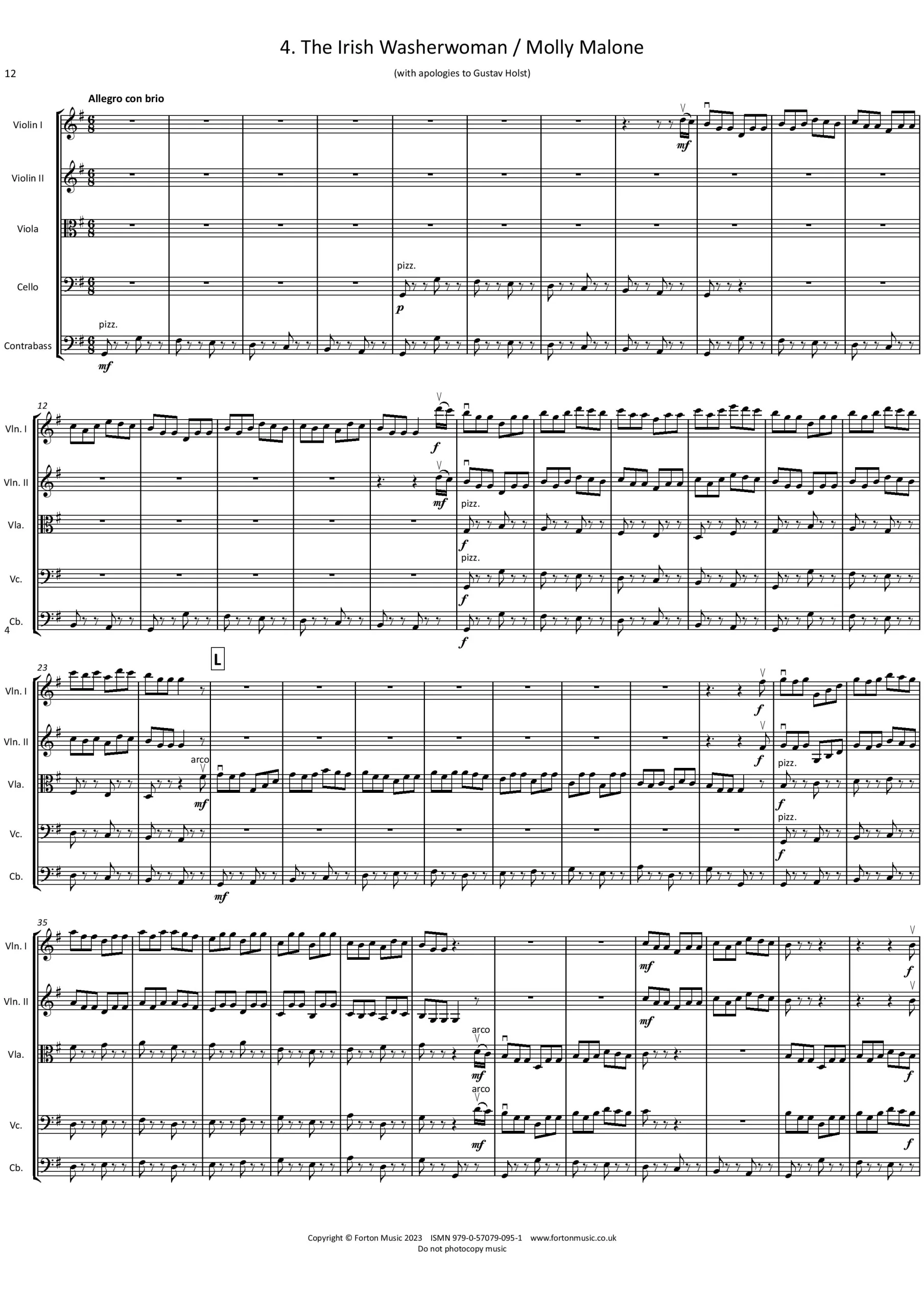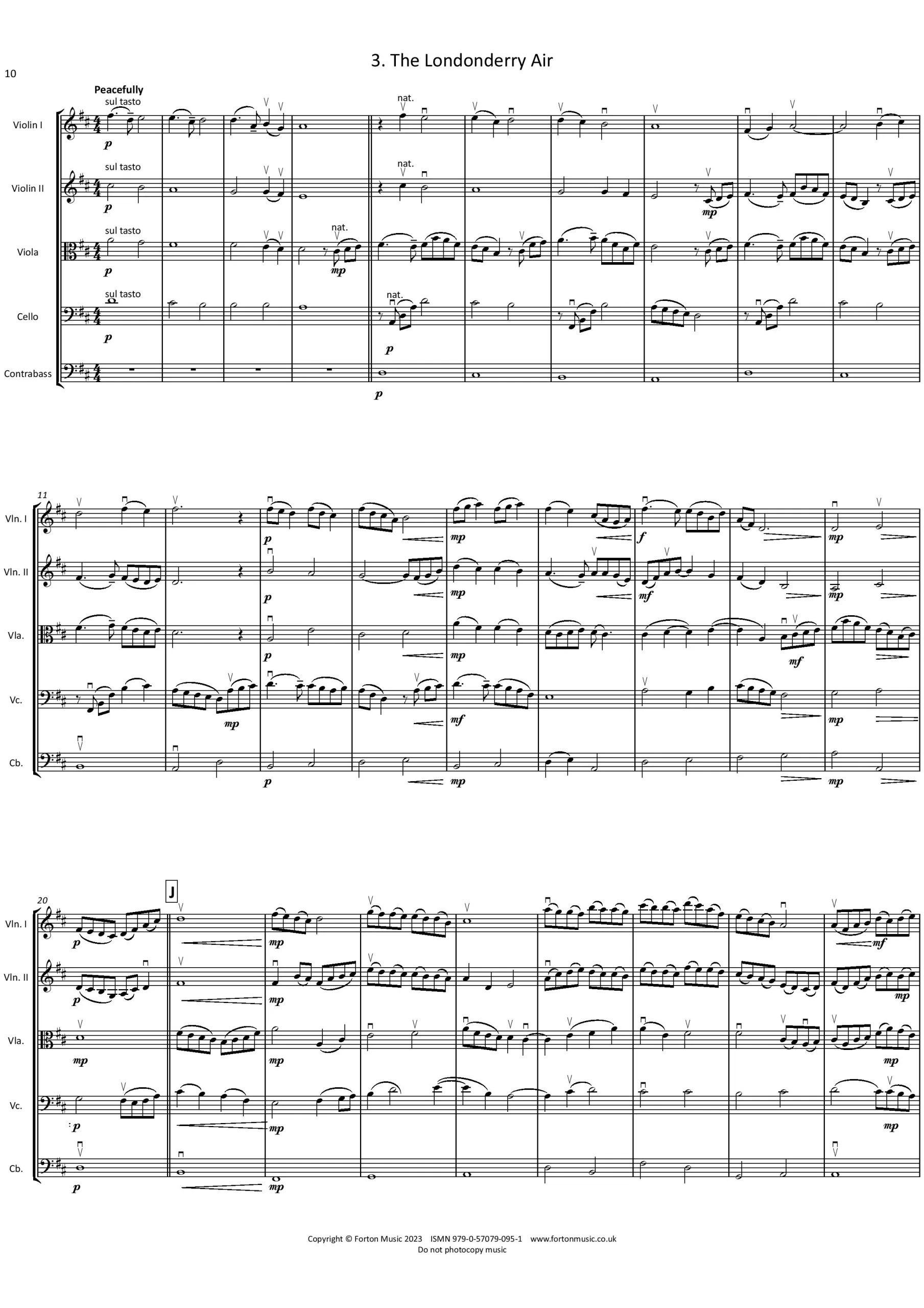 The four arrangements that comprise this suite were written for the Maumee Valley Country Day School Upper School String Ensemble. The four use very familiar Celtic folk melodies as their basis, though each tries to capture the music nature of the lyrics behind the tune. The level of the pieces runs from moderate to advanced. A concerted effort has been made to ensure that the nature of each of the five parts (Violin 1, Violin 2, Viola, Violoncello, and Contrabass) plays a key element in the texture of the work music, and all have sufficient musical interest and challenge to ensure all players have an enjoyable playing experience. All four arrangements have been read and edited and bowed by professional string players to ensure they are appropriate for the pedagogical level intended.