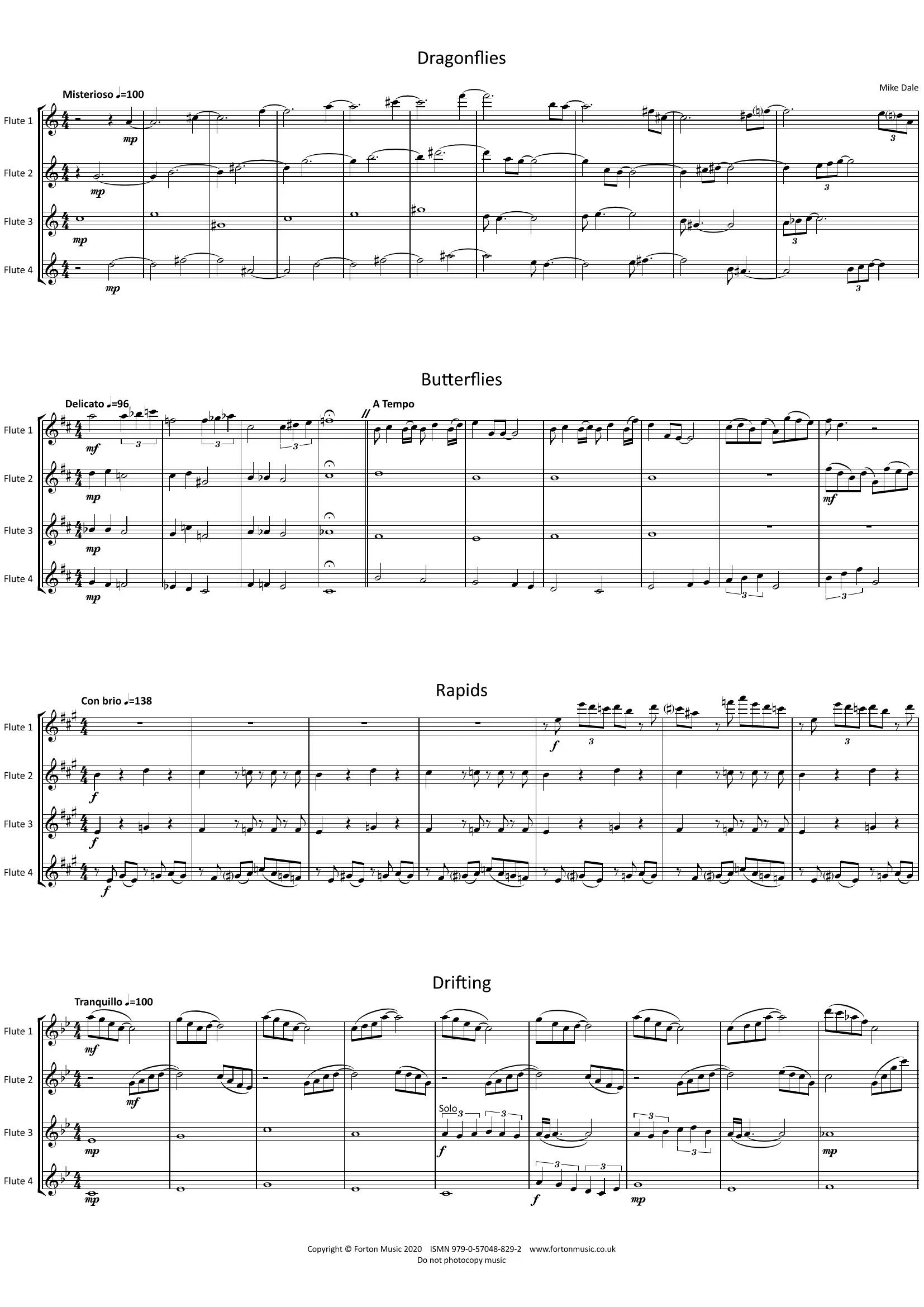 Rapids – A lively rhythmic contrast, to be played with plenty of energy. This movement describes the flowing water of a small mountain stream.