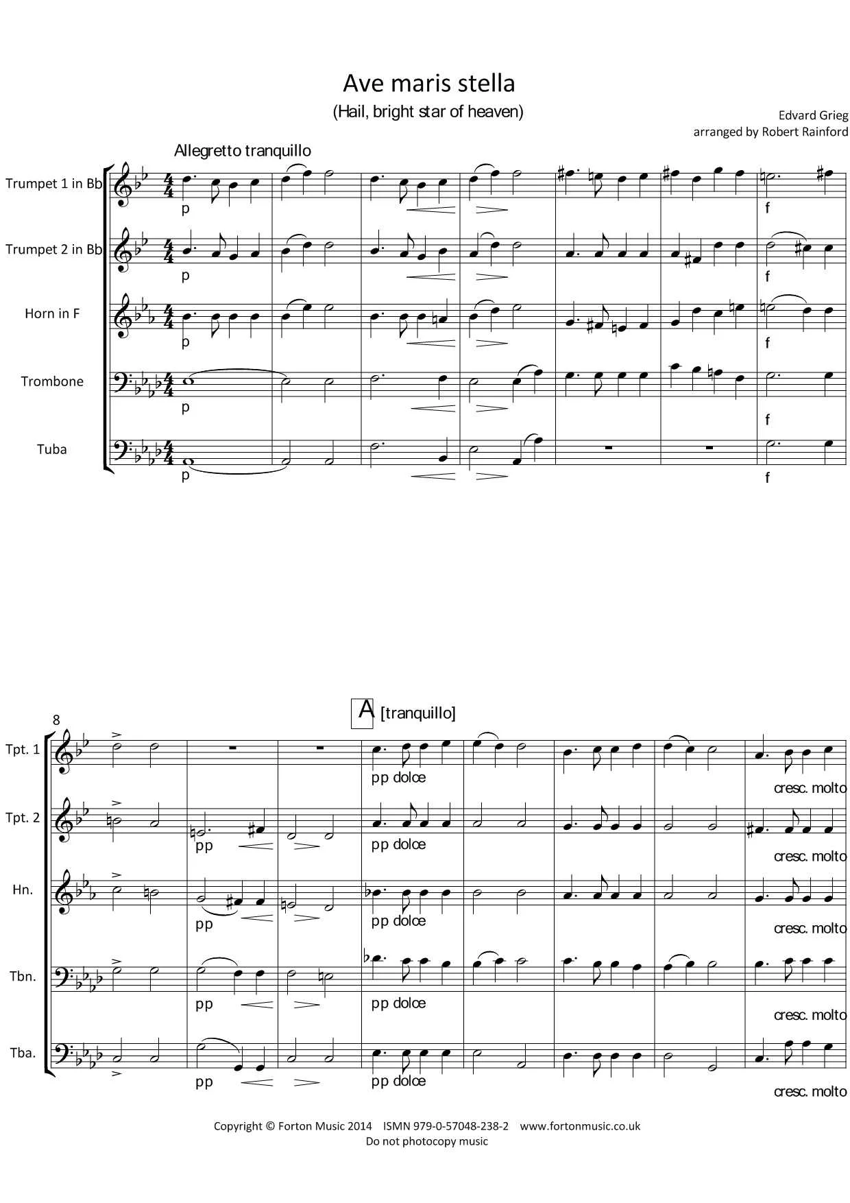 A simple but effective arrangement, mainly in rhythmic unison. One for the less experienced quintet. A great introduction to ensemble playing, with limited range but maximum effect.