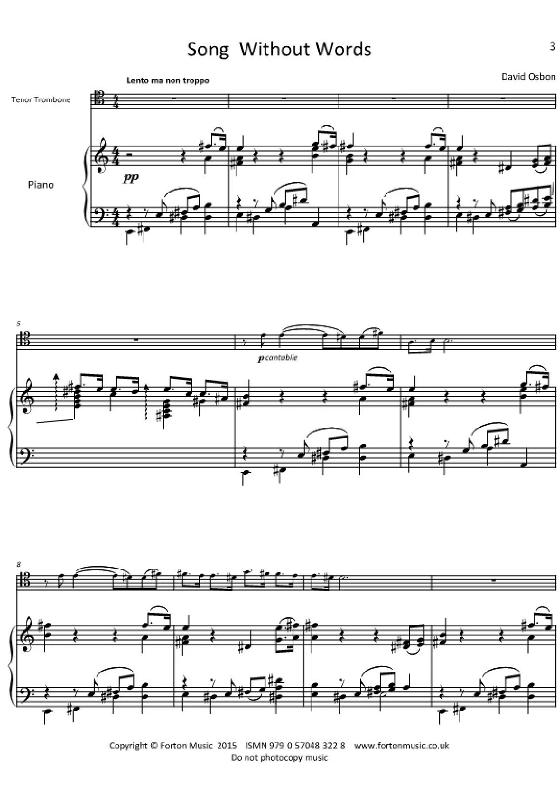 I’ve always been fascinated by the depth of expression in the song cycles of Robert Schumann, and have tried, in these two pieces, to emulate that using the trombone. Why the trombone? Well, it has a rich history of being ‘paired’ with the voice in choral music but, if I’m really honest, as a trumpet player I’ve always been a little bit envious of the trombone’s lyrical elegance. The music, in both of these works, has a lot of ‘dialogue’ between the trombone and piano, I really did think of them as communicating – only without using words.