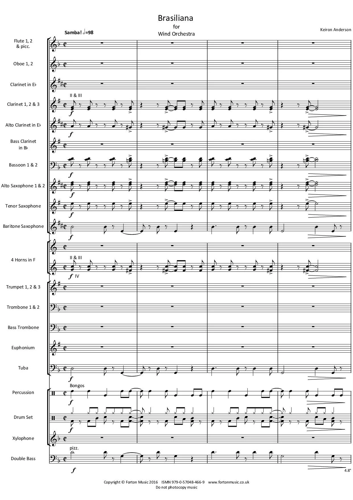The Samba has a special significance in Brazilian musical culture and it is symbolic of sheer joy and energy. Music is a mixture of communication and energy and this work is designed to allow the players to generate that energy, thus communicating it to the audience. That infectious drive and musical energy will be a high point of any live performance or recording.
