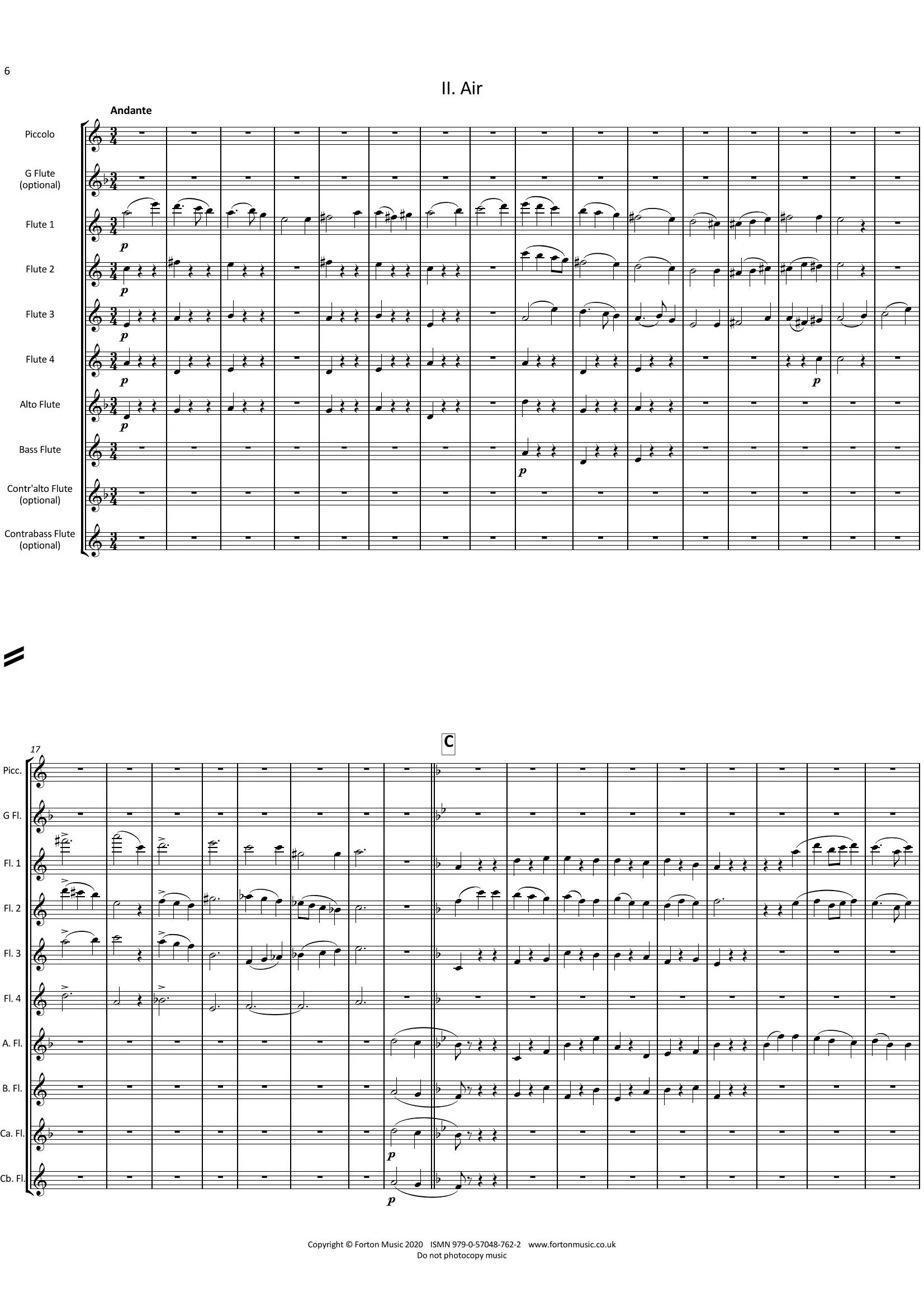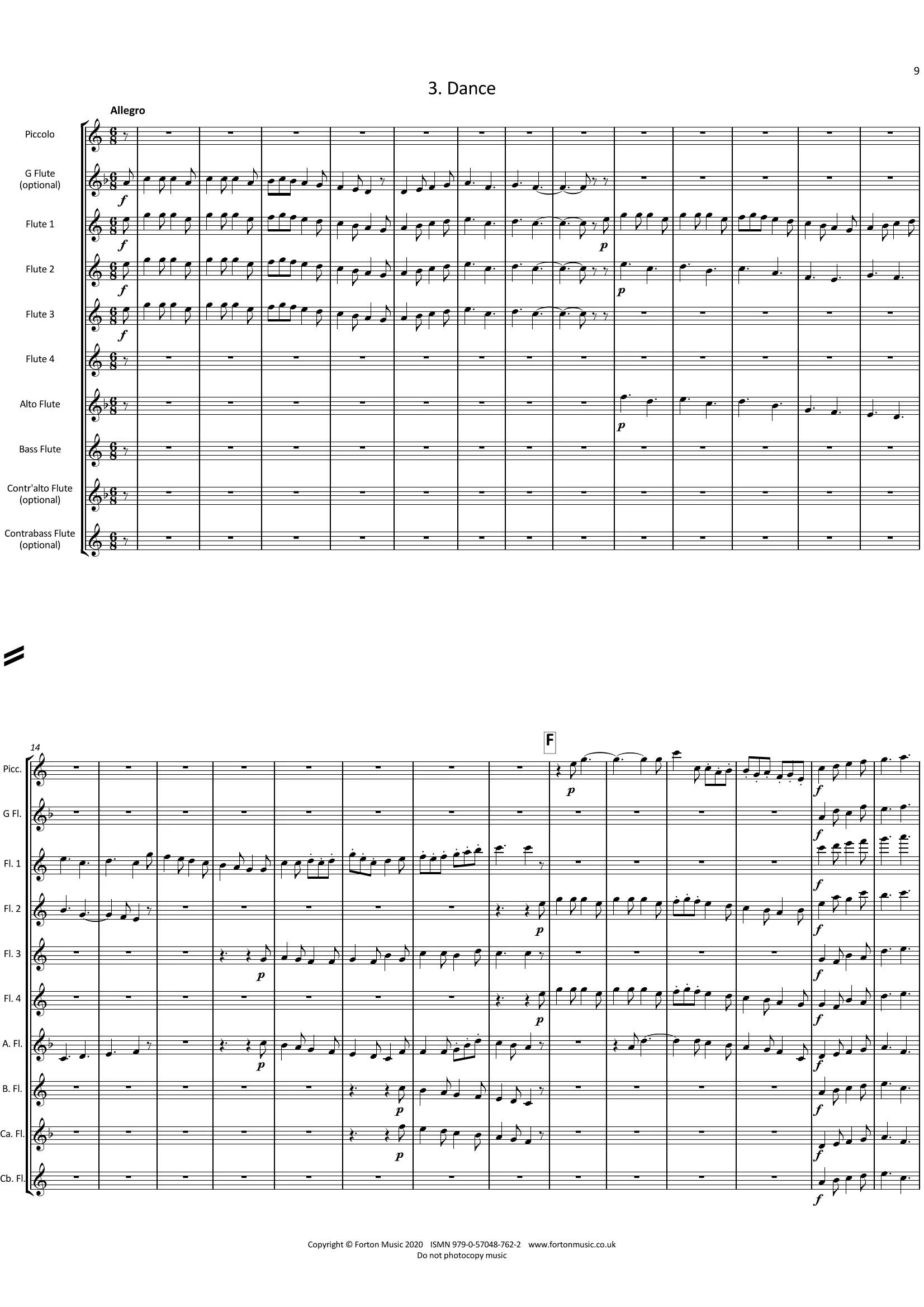 This arrangement has been crafted so that flute 1 has the hardest part and flute 4 the easiest. All parts contribute to the piece, with solos for everyone.