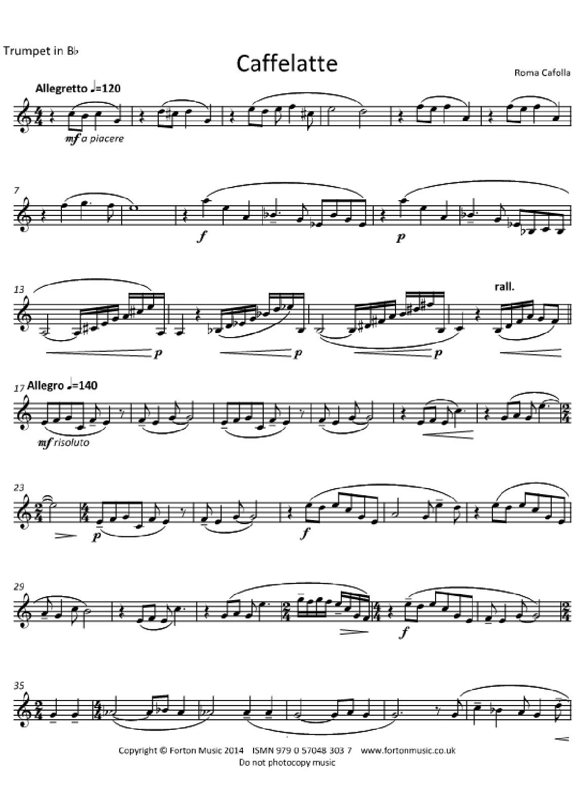 The piece was written for my son-in-law whilst I was in a bustling cafĂ© in Cardiff sipping my ‘caffelatte’. It was for a concert that evening!!! The introduction is a March marked Allegretto (a piacere) whilst the main theme is an upbeat Allegro. It is loosely in pseudo Rondo form with a returning embellished and augmented first theme. A fun piece!