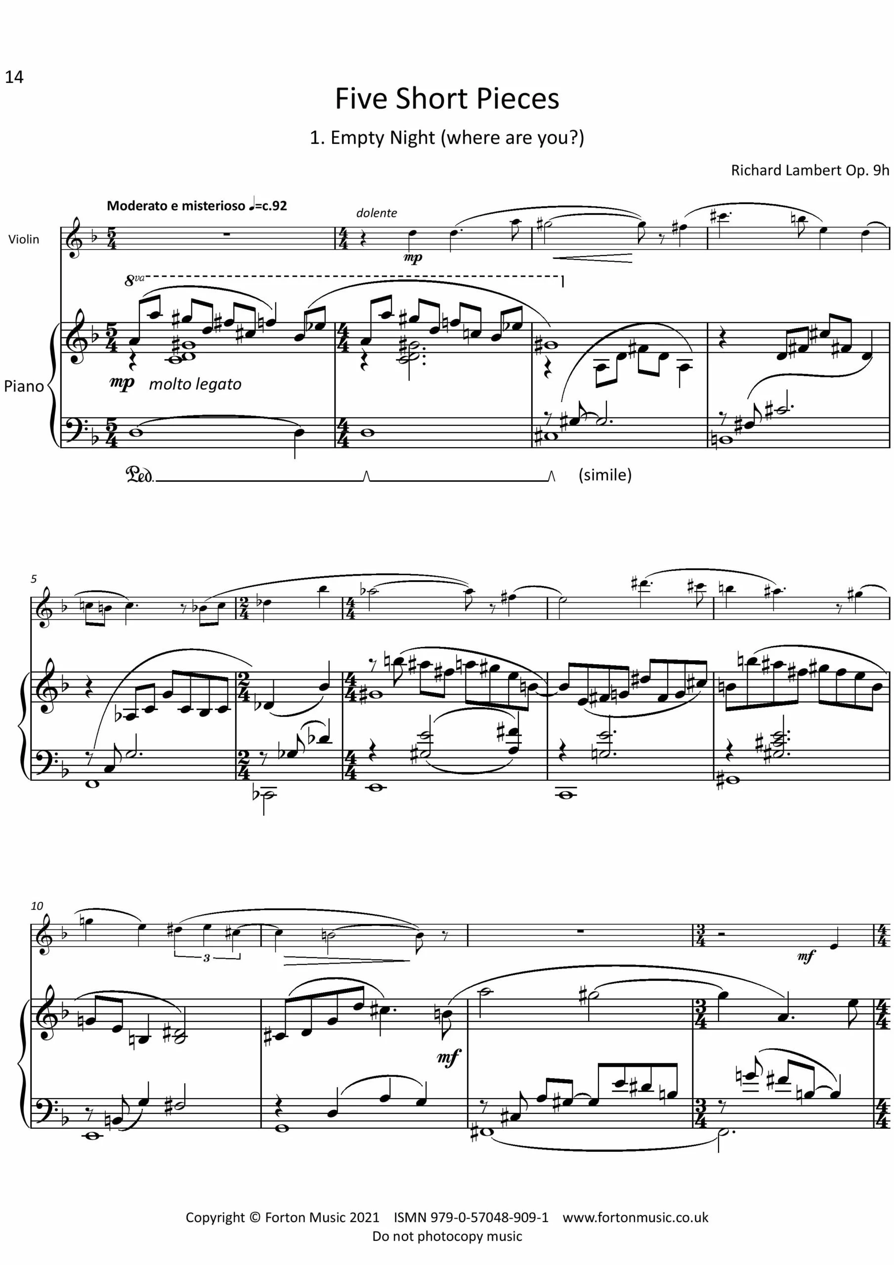 Five Short Pieces, Op. 9h These five pieces are elaborate transcriptions of To One (1985), five songs to poems by Christina Rees, which convey the countless moods associated with a relationship.