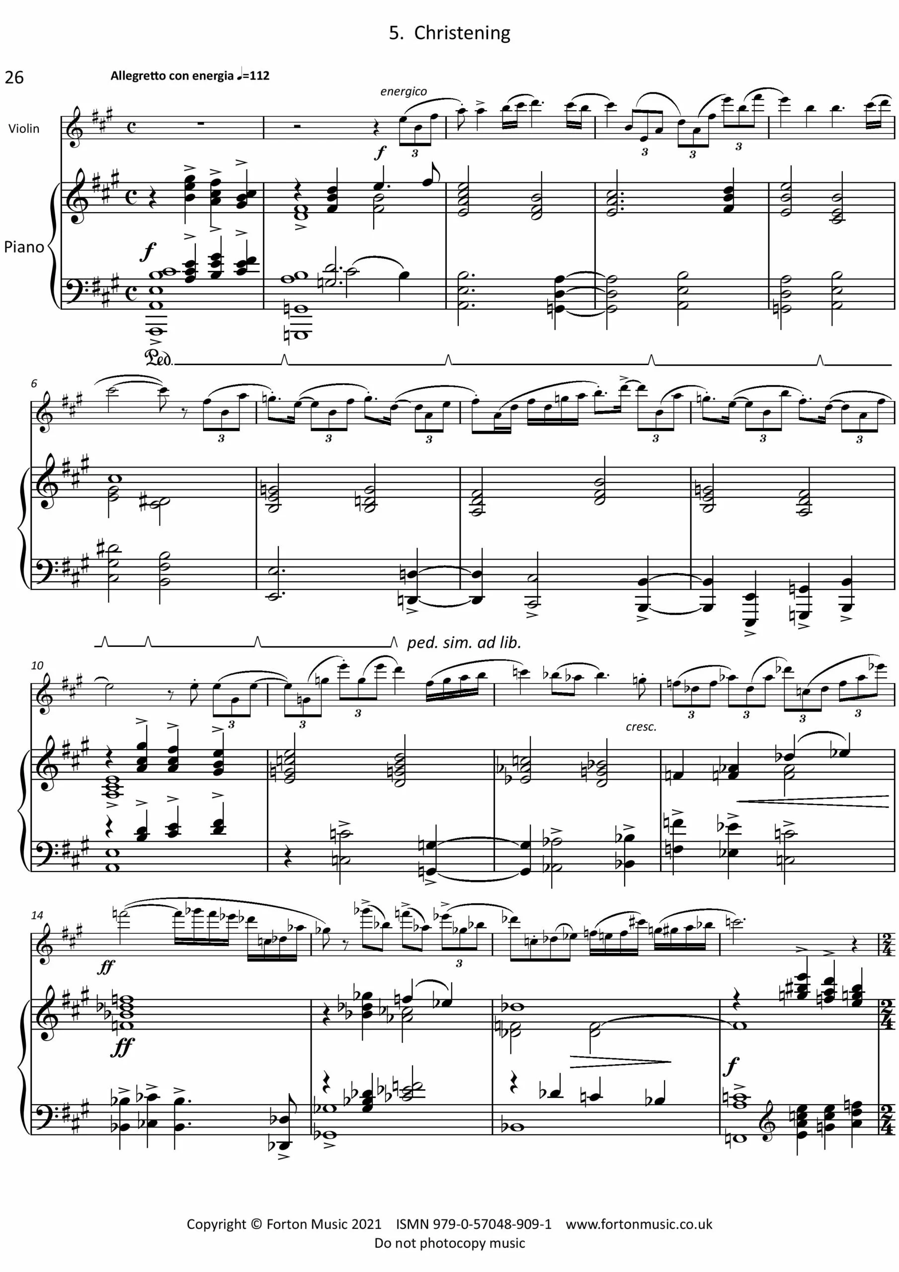 Abigail’s Jig, op. 10 no. 2g This lively piece for violin and piano was composed in 1980, originally for flute and piano, to celebrate the birth of Abby, the composer’s daughter. The piece attempts to capture the atmosphere of an Irish jig as played by a piper, with a harmonically straightforward piano part, which uses a mixture of ‘vamping’ and melodic imitation of the violin part. The introduction is intended to be humorous and rather musically misleading, openly parodying the ‘cowboy’ music of Aaron Copland. Modal harmony helps to create the mood of pseudo-folk music.