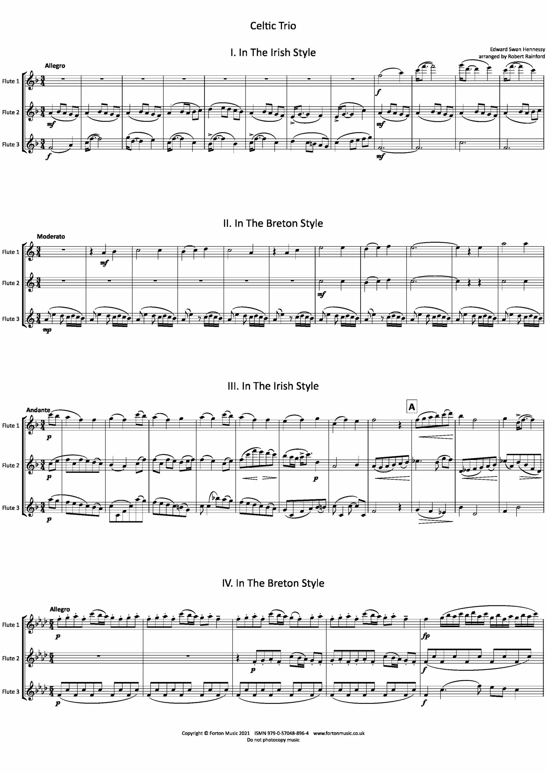 This little Suite (originally written for string trio) explores various styles of celtic music from Ireland and the Breton region.