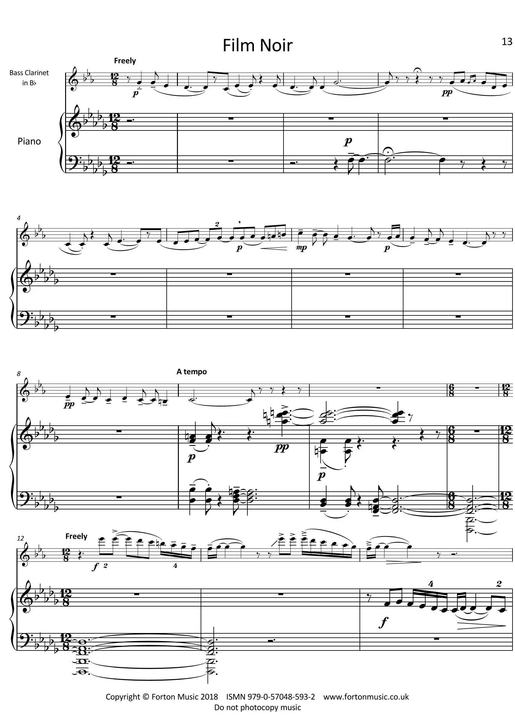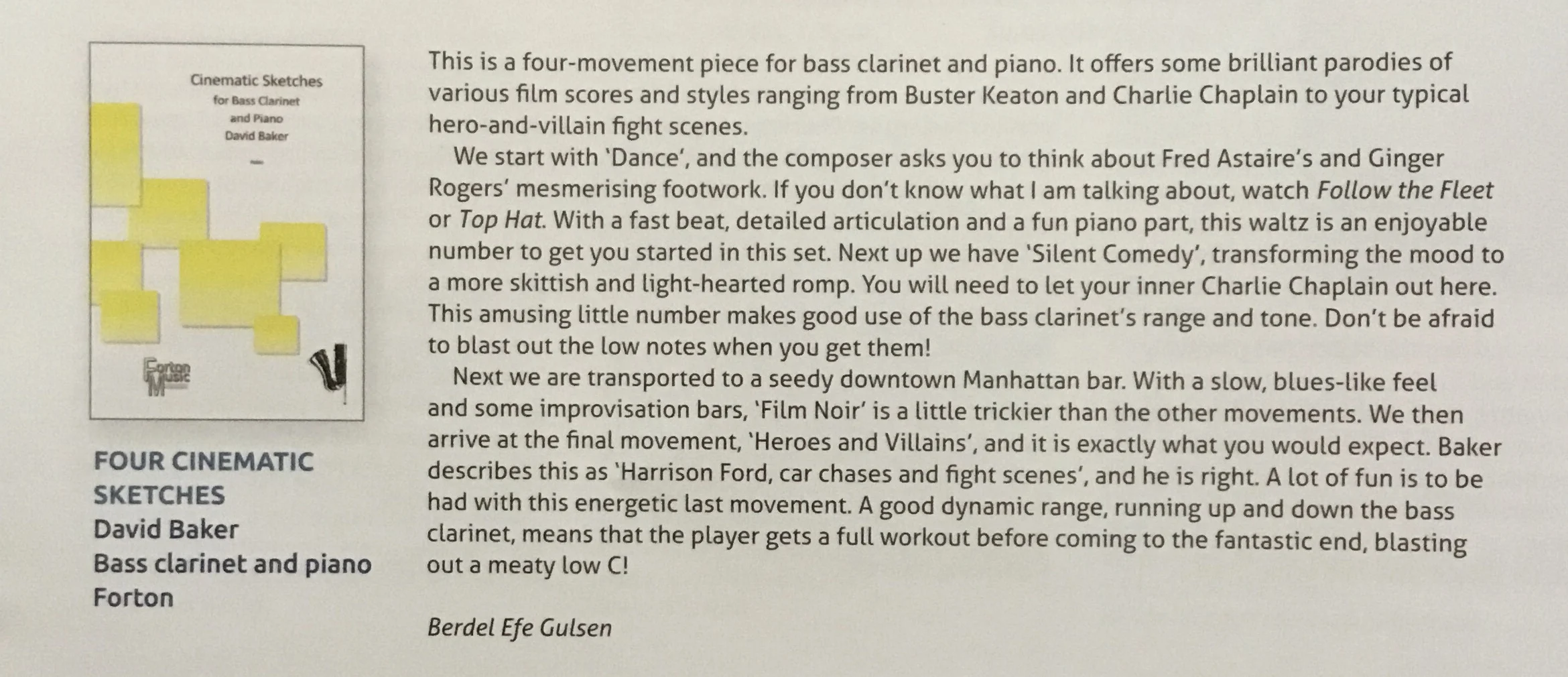 Four Cinematic Sketches These four movements for bass clarinet and piano were written in 2010, in an unapologetic parody of various film score styles.