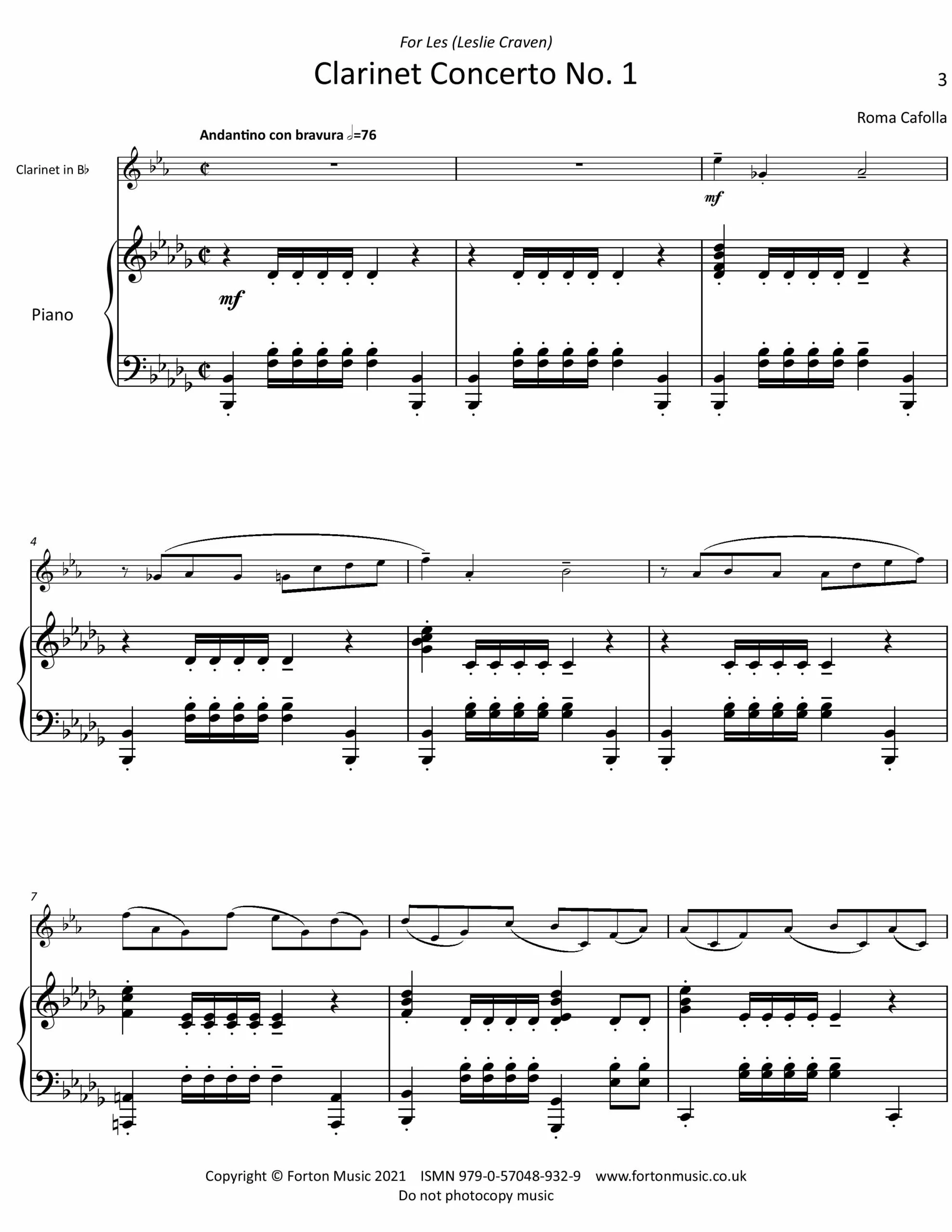 1st Movement. The first movement is lively and spontaneous. It darkens to a beautiful ethereal section where the clarinet sings. The optional cadenza showcases the technique and variety of the clarinets colours and contains some virtuosic passages. The final phrases mirror those of the third movement.
