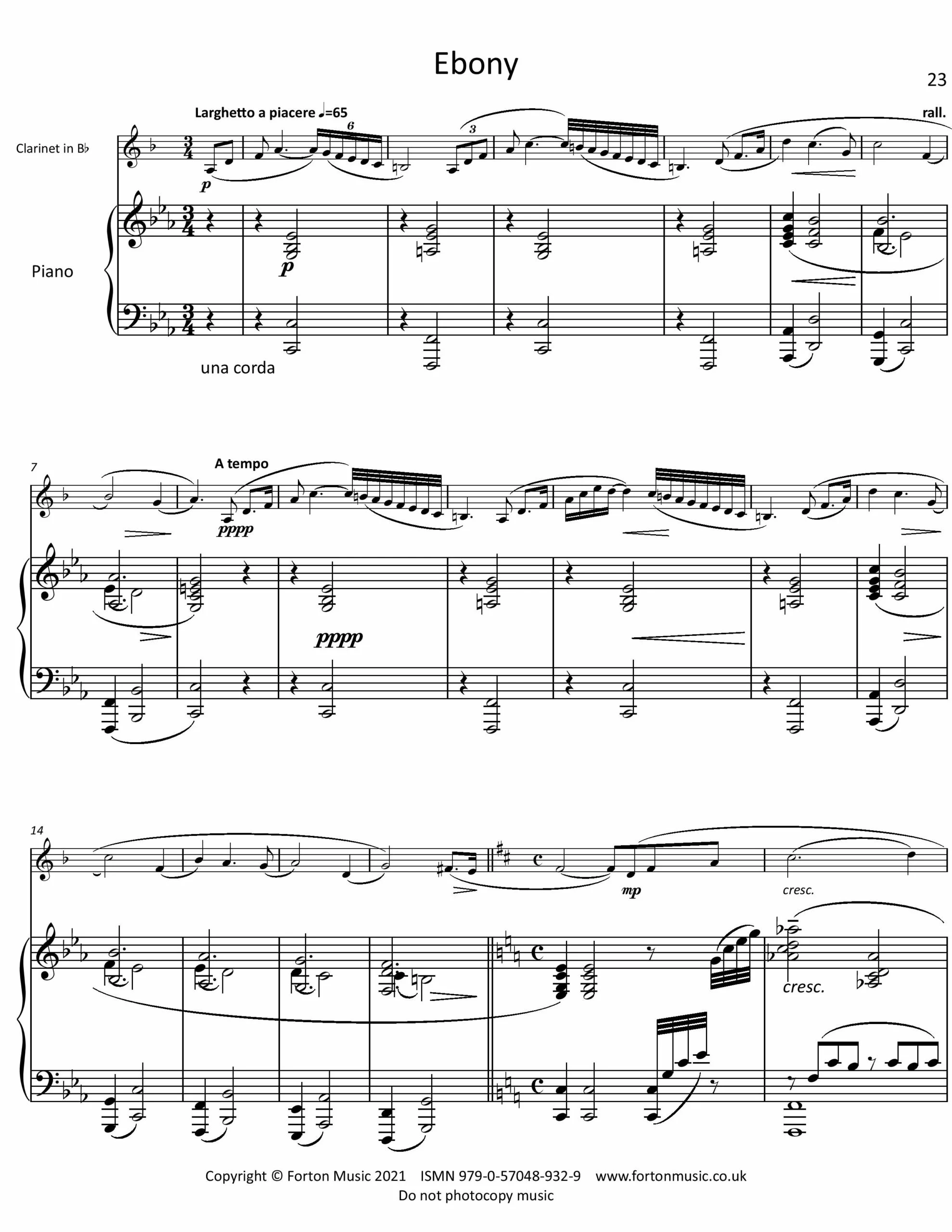 2nd Movement EBONY This movement is a poignant lament embellished with swooping flamboyant arpeggios. The haunting melodic lines develop into emotional outpourings that ultimately find peace and tranquillity.