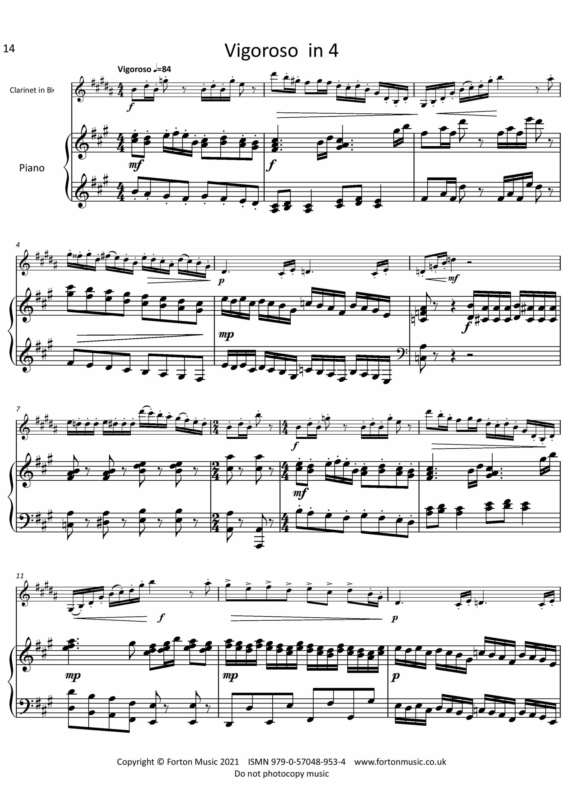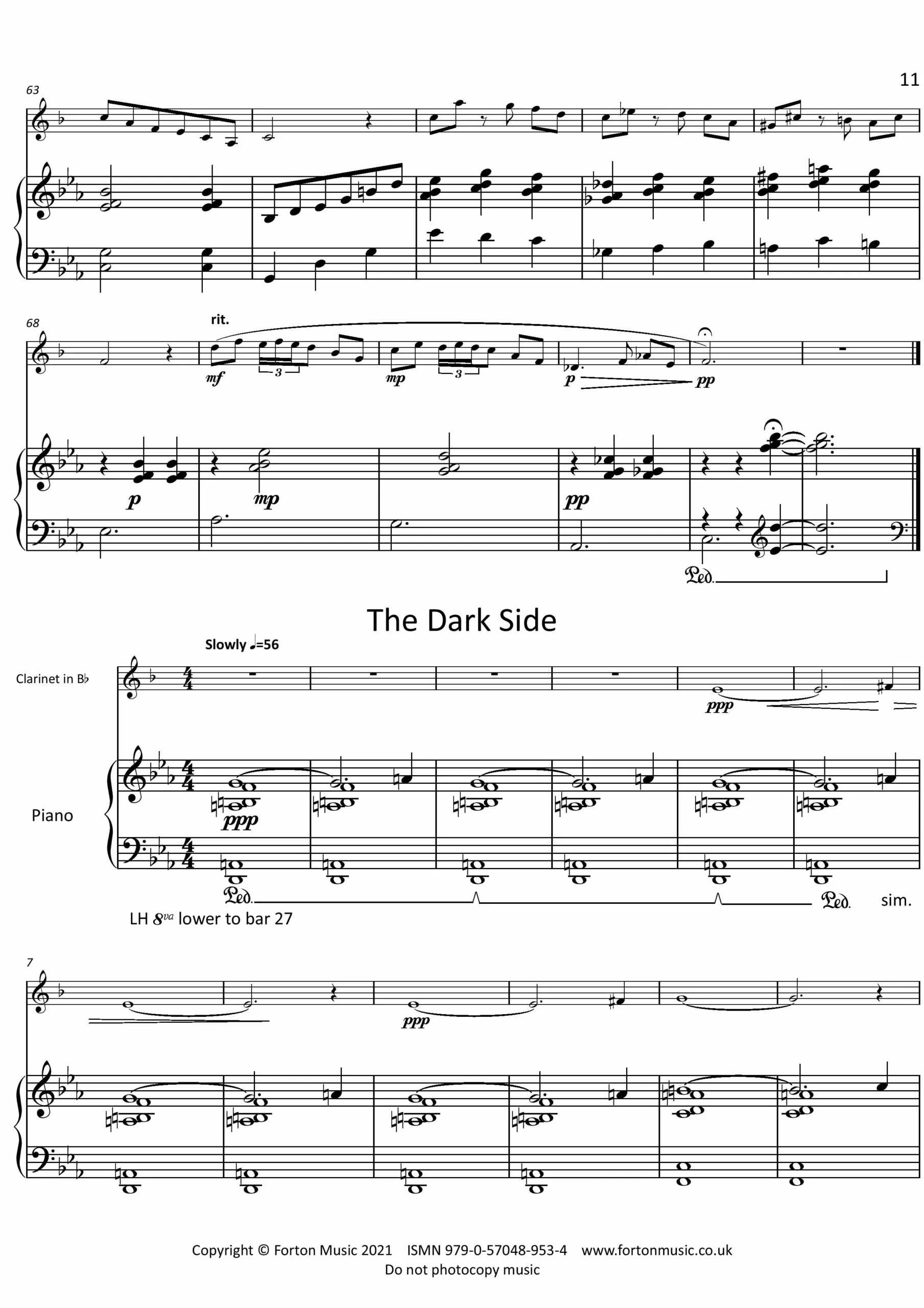 A collection of 5 pieces for Clarinet and Piano, ranging from the gentle ‘Andante Calmato’ to the energetic ‘Vigoroso in 4’. ‘Claret for the Clarinet’ is a fun piece, imitating the unsteadiness experienced by others after one glass too many, whilst ‘The Dark Side’ takes us to a different place entirely, it’s many twists of melody and implied atonal harmonies. Clarinettist and Pianist alike will enjoy communicating these pieces, either as part of a programme, or as colourful encores.