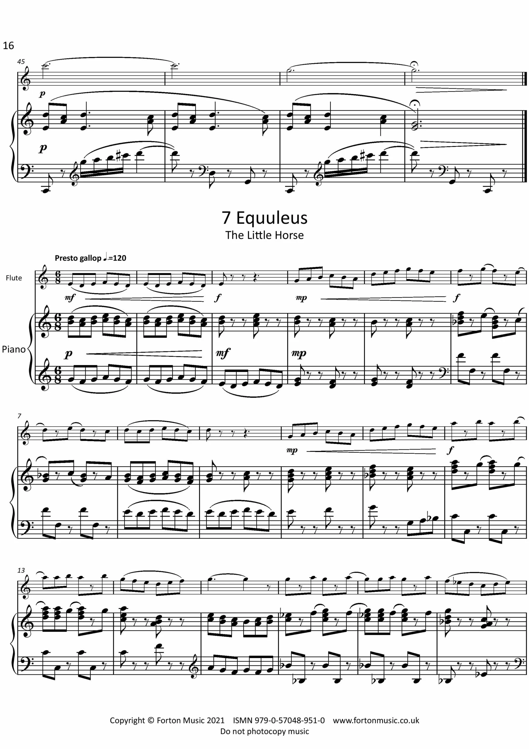 Constellations Set IV is an album of 9 exciting pieces for Flute and Piano in varied styles and moods, with each piece taking inspiration from the characteristics of selected constellations of the night sky. You will find for example, a slinky Lynx (Lynx), a graceful Swan (Cygnus) and a dazzling bird of fire (Phoenix). The technical requirements range from introductory (relative beginner) through to intermediate (approximately grade six of international performance qualifications) and are presented in approximate order of technical difficulty. These entertaining pieces are an ideal resource for students and teachers supporting learning from an early stage through to higher technical and musical abilities. They are complete, standalone concert pieces that can form part of an engaging recital performance or simply playing for enjoyment. Constellations Set I is for Violin and Piano, Set II is for Brass and Piano and Set III is for Descant Recorder and Piano.