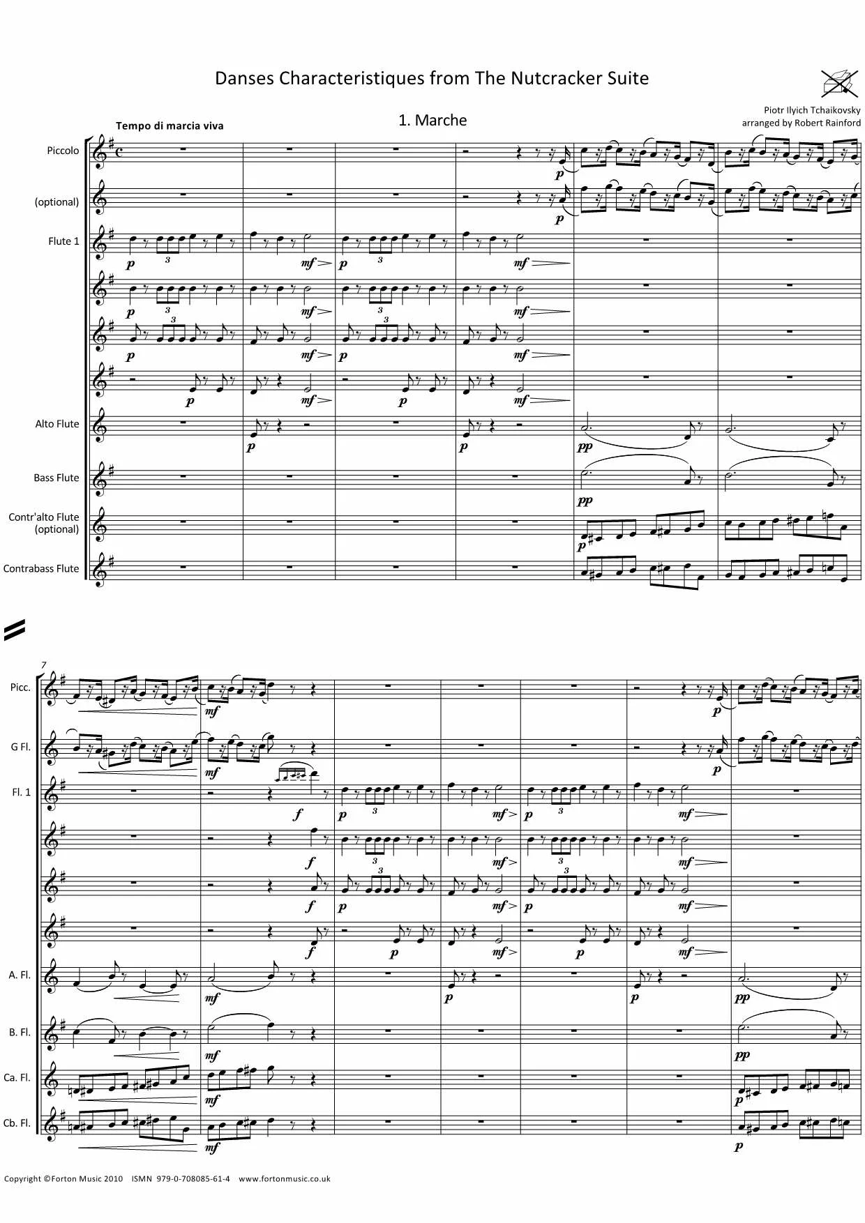 Flute Choir/Ensemble Piccolo, optional G treble, 4 flutes, alto flute, bass flute, optional contr’alto flute, contrabass flute