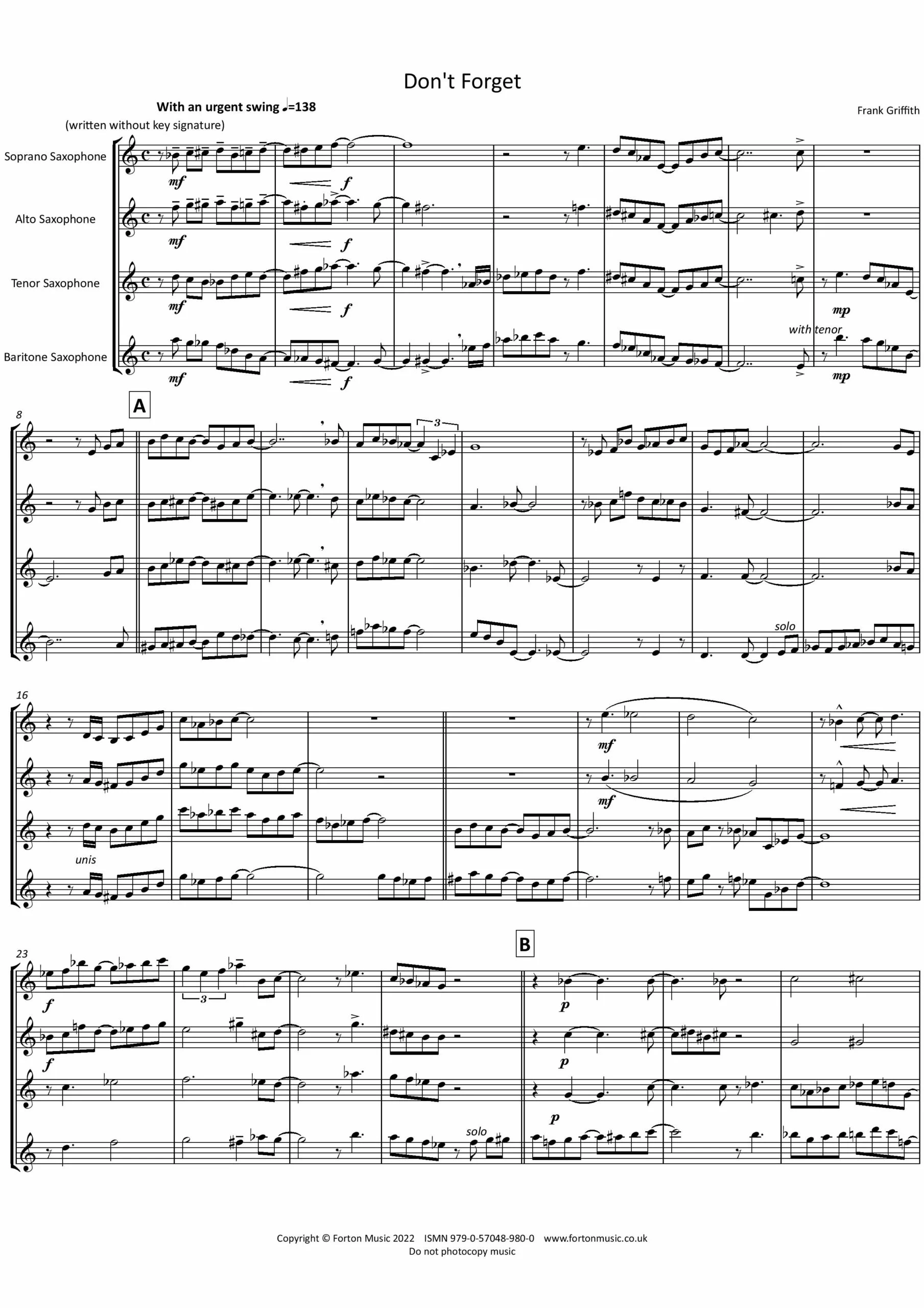 A medium tempo swinger full of linear passages that emphasise all saxes phrasing together in both harmony and unison. Grade 5 level.