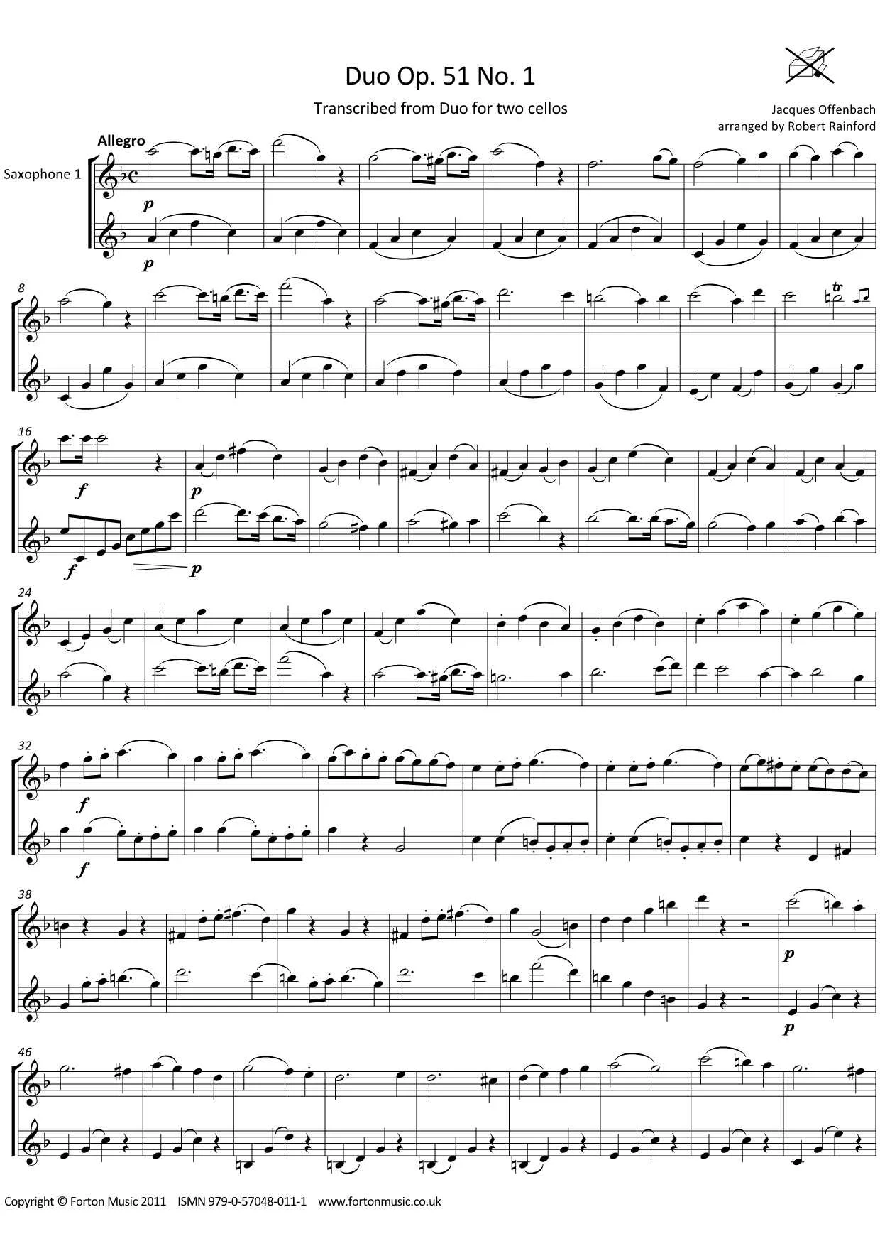 A duo of very substantial length, this book includes individual printed parts for ease of page turns as well as a score. In three movements.