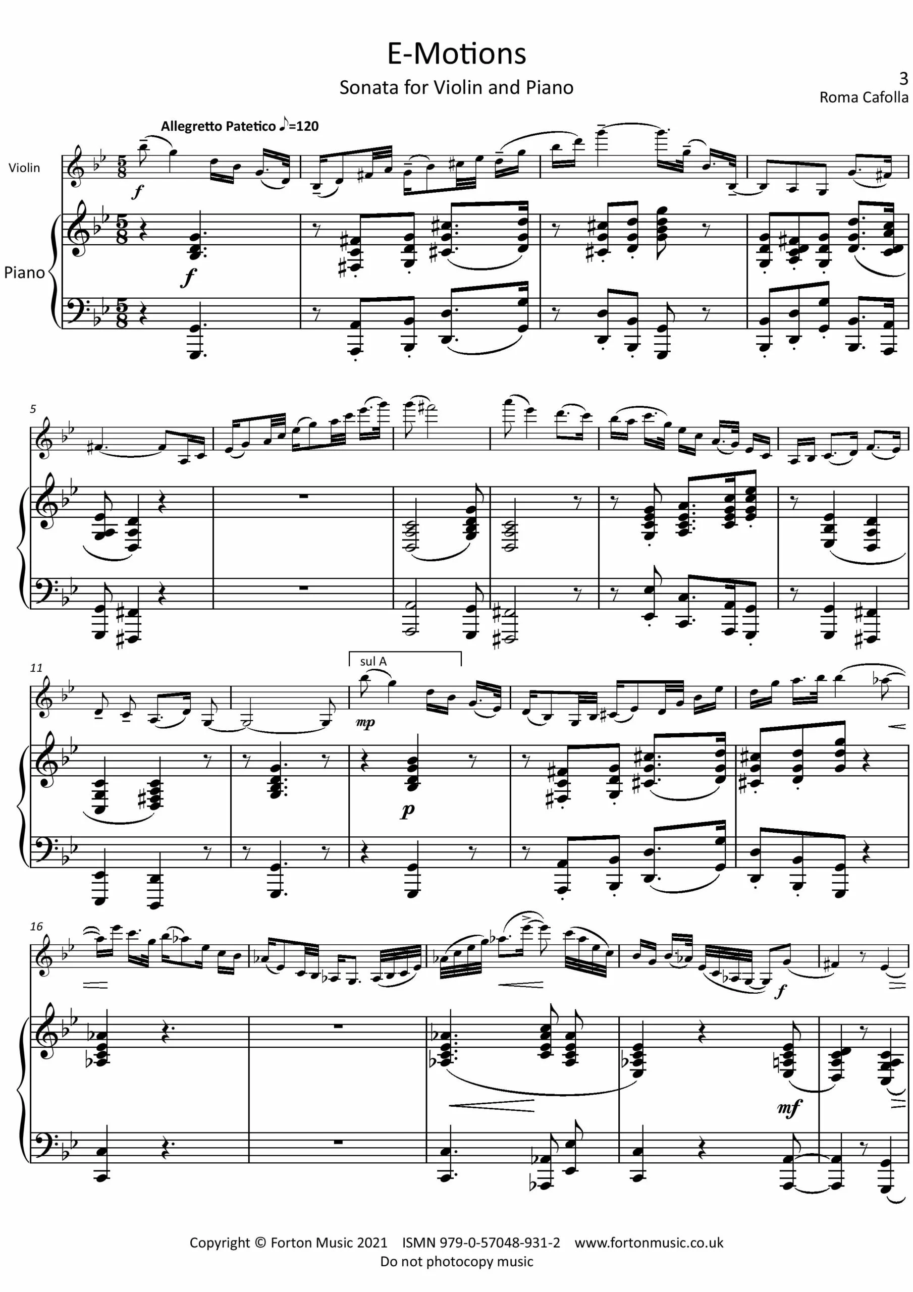 My formative years were spent listening to my parents preparing for their concerts. My father was a wonderful violinist and flamboyant character. My mother was a superb pianist whose touch and technique were magical. I was enthralled at the meticulous rehearsals and frequent disagreements but was fired with the love of this duo. I had always wanted to write for the violin and the middle movement of this sonata was the first section to take form. It was inspired by my husband, himself a super violinist. Then fate took a hand and I was introduced to Lana and Yoko during a recording of one of my CDs. I knew that here were two superb artistes that understood my music and could bring my thoughts to life. With the brilliance of their technique the tapestry of sound was open to me. All was possible. E-Motions, the sonata, was formed and the power of the violin to thrill and captivate was my prime objective. To me the ability of the performers to produce such magic was awe inspiring. This sonata calls to each individuals unique emotions and deepest understanding.