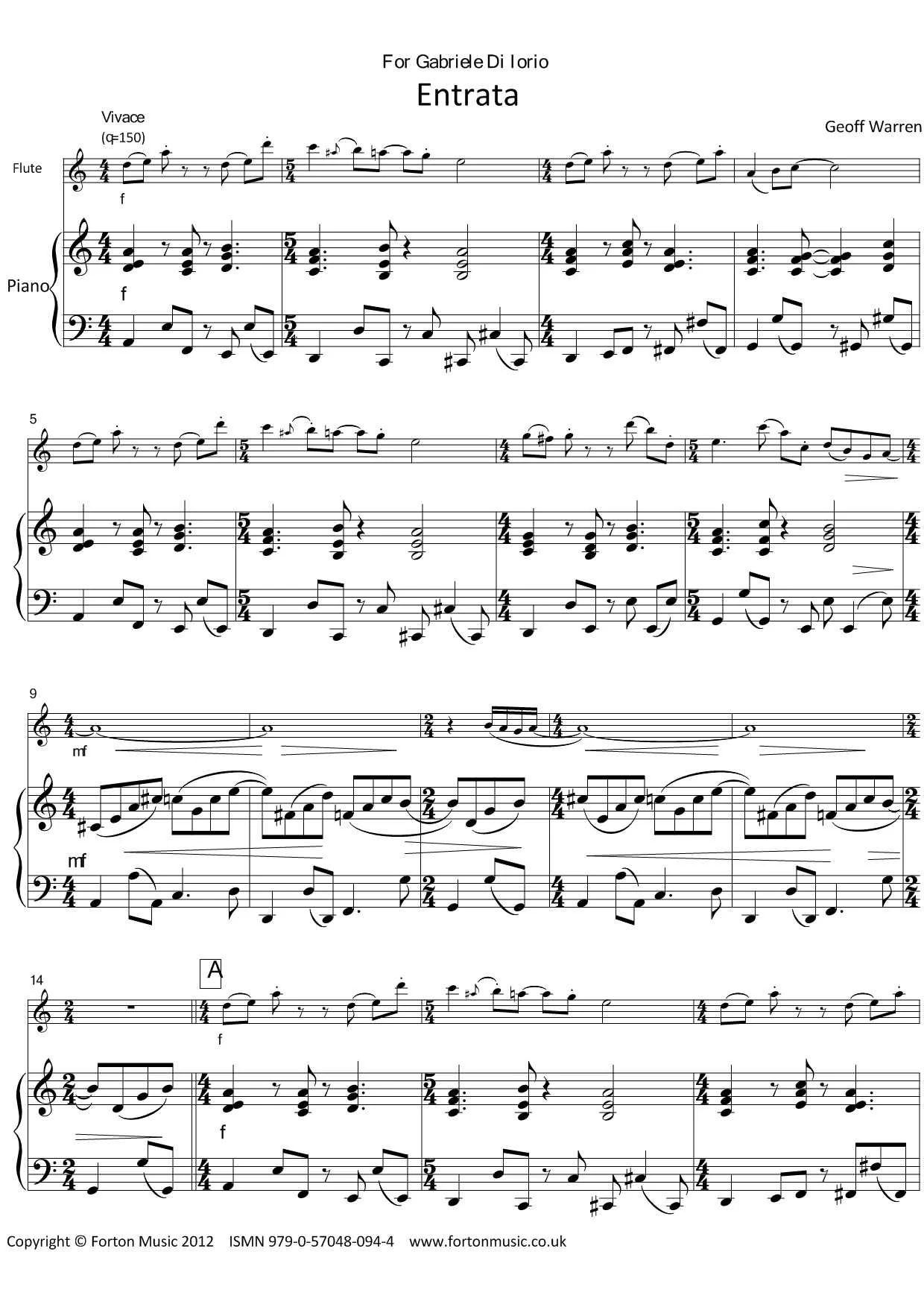 A concert piece for flute and piano by Geoff Warren. With its modern jazz tinged harmonies and shifting rhythms, this is a great way to introduce some jazz stylings to the concert platform. Rhythmically complex, and reaching up to top B, one for the more advanced players. There is also the option to use the included chord sequence to improvise over the middle section, or there is a written out solo for the less adventurous!