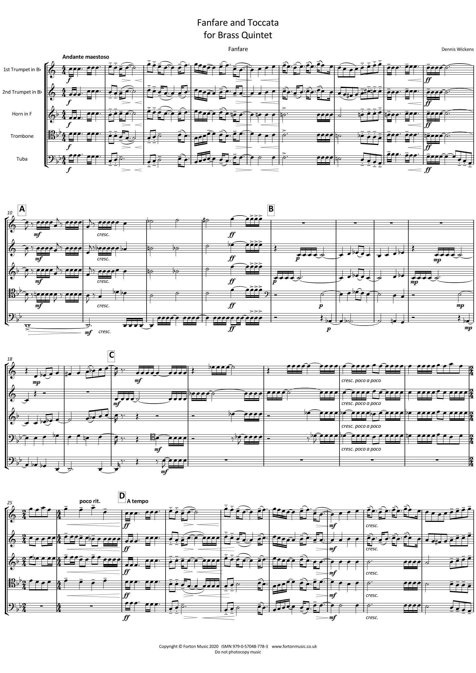 This piece was written in 1973 for the then Bournemouth Brass Ensemble, led by Dennis Wise, for their use in recitals for schools in the region. The Fanfare can be played as a separate item, using the alternative ending provided.