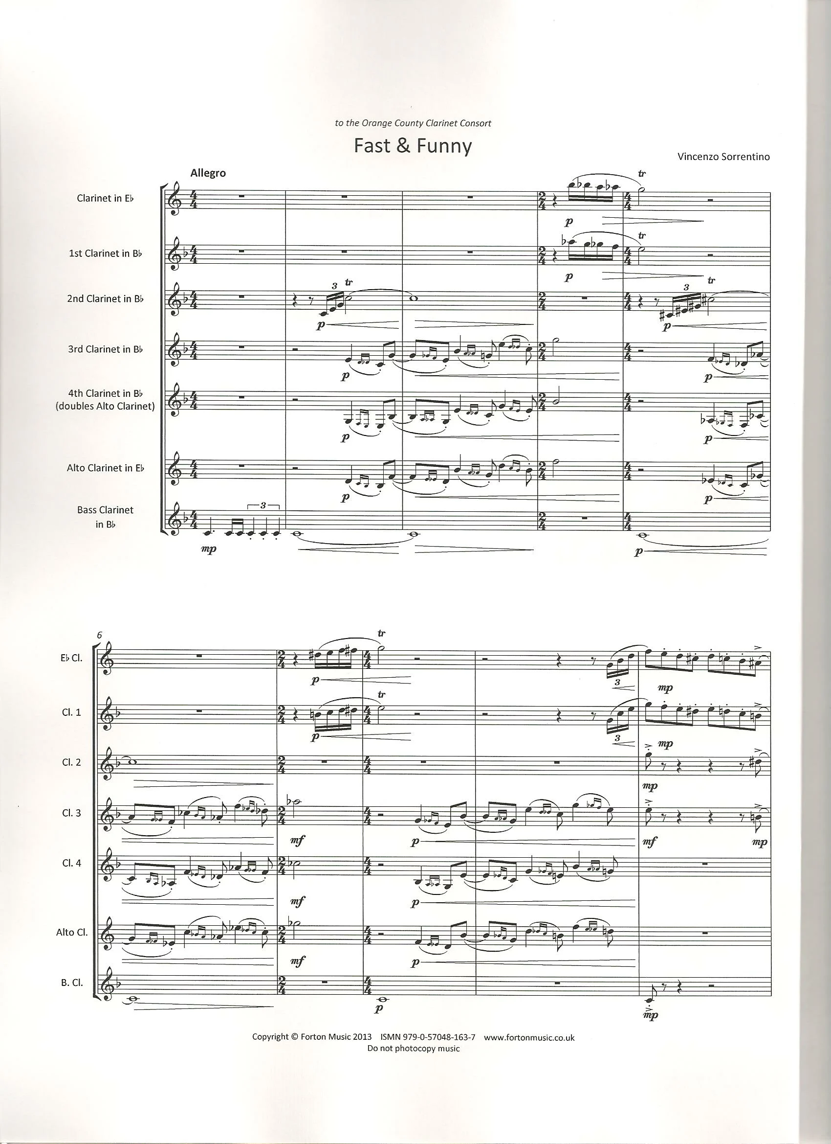 Clarinet Ensemble – Eb Clarinet, 3 Bb Clarinets, Bb Clarinet or Alto Clarinet, Bass Clarinet. Well known for his incredibly popular flute ensemble music, this piece brings Vincenzo Sorrentino’s trademark style to the clarinet ensemble. With sliding grace notes and jazzy syncopations this piece sounds like a combination of fairground music and ragtime stylings. The Eb clarinet and Clarinet 1 both reach the top of the range, but the other parts are more manageable, although it needs a fair speed and some intelligent playing to bring out the humour in the music.