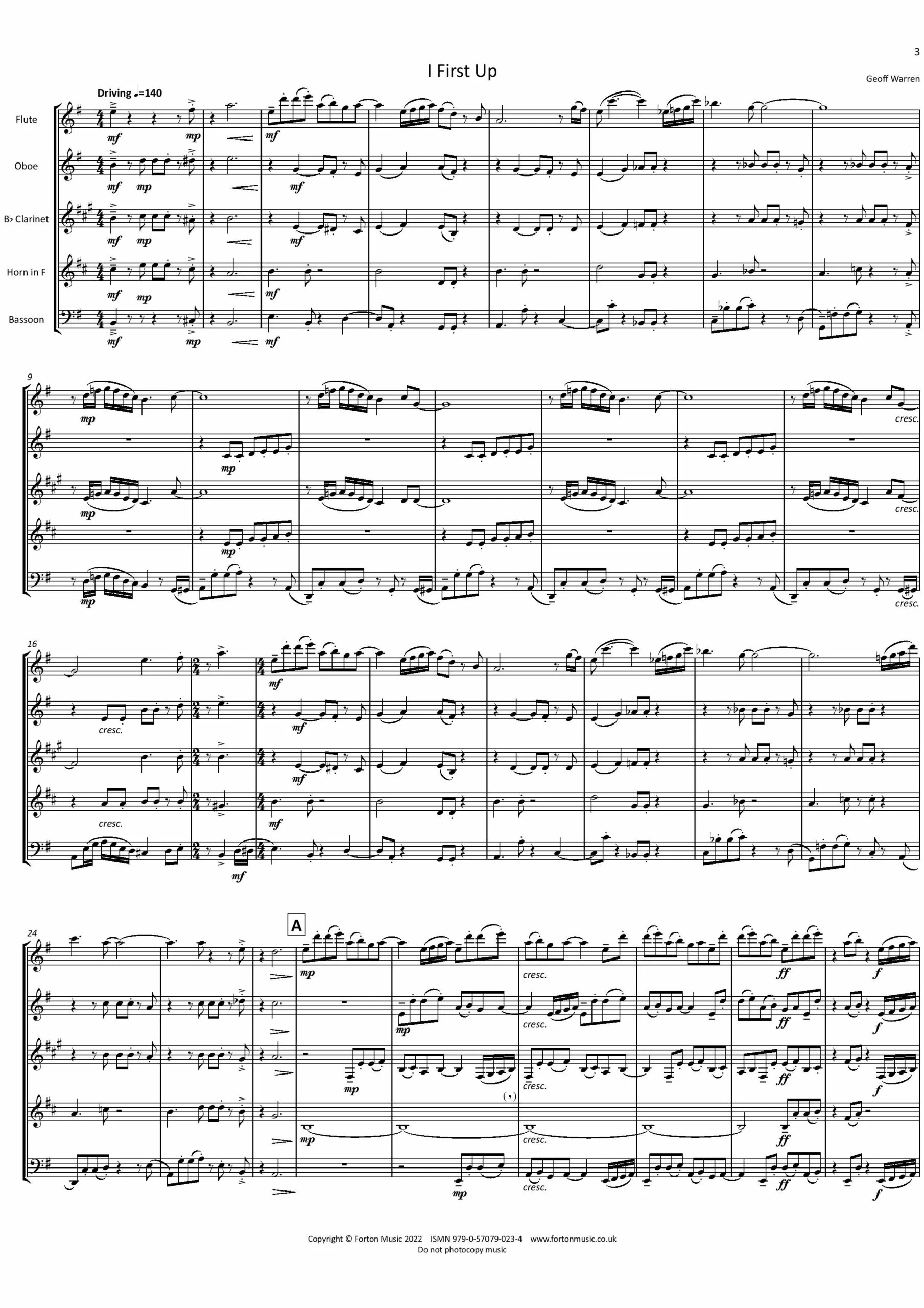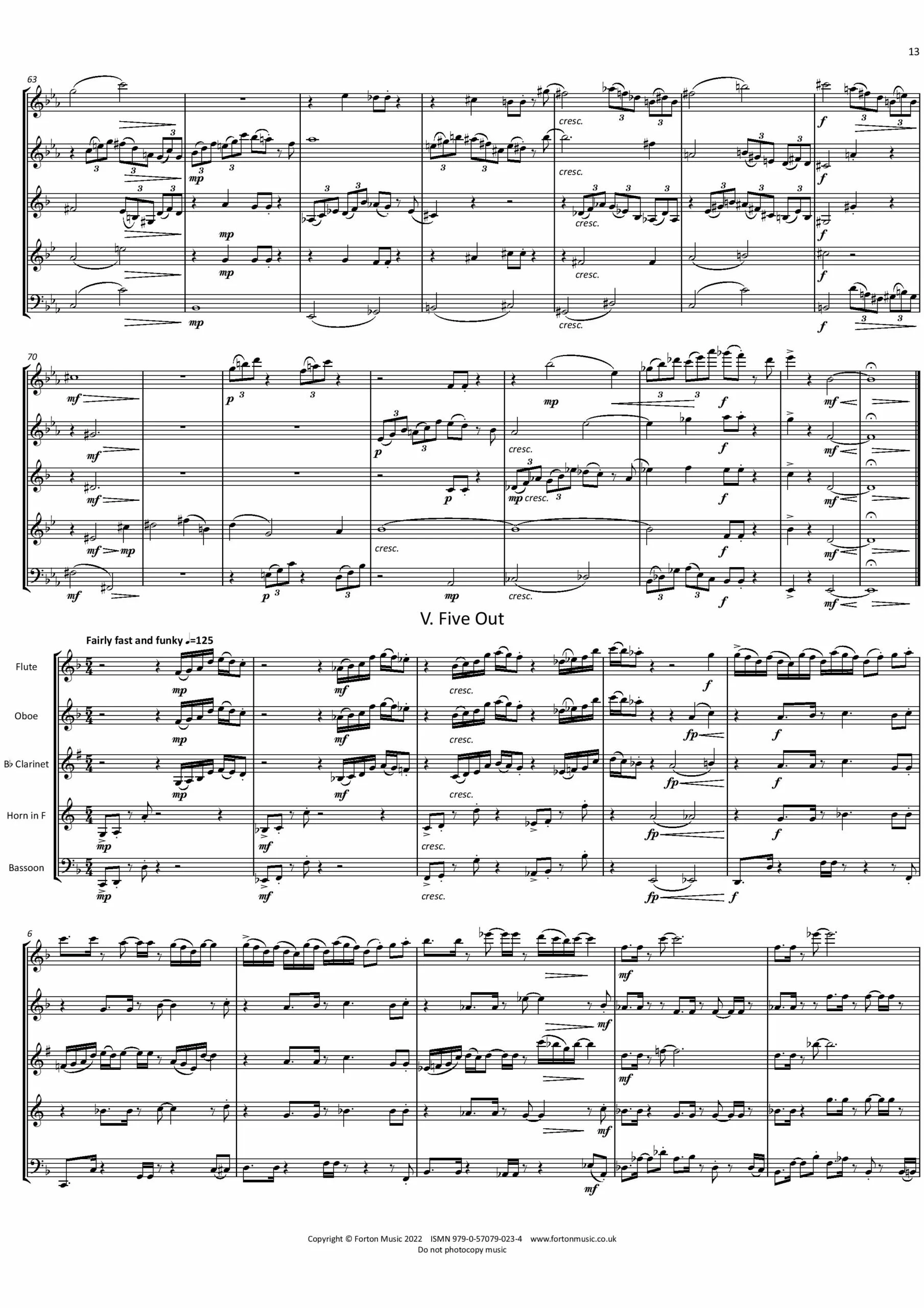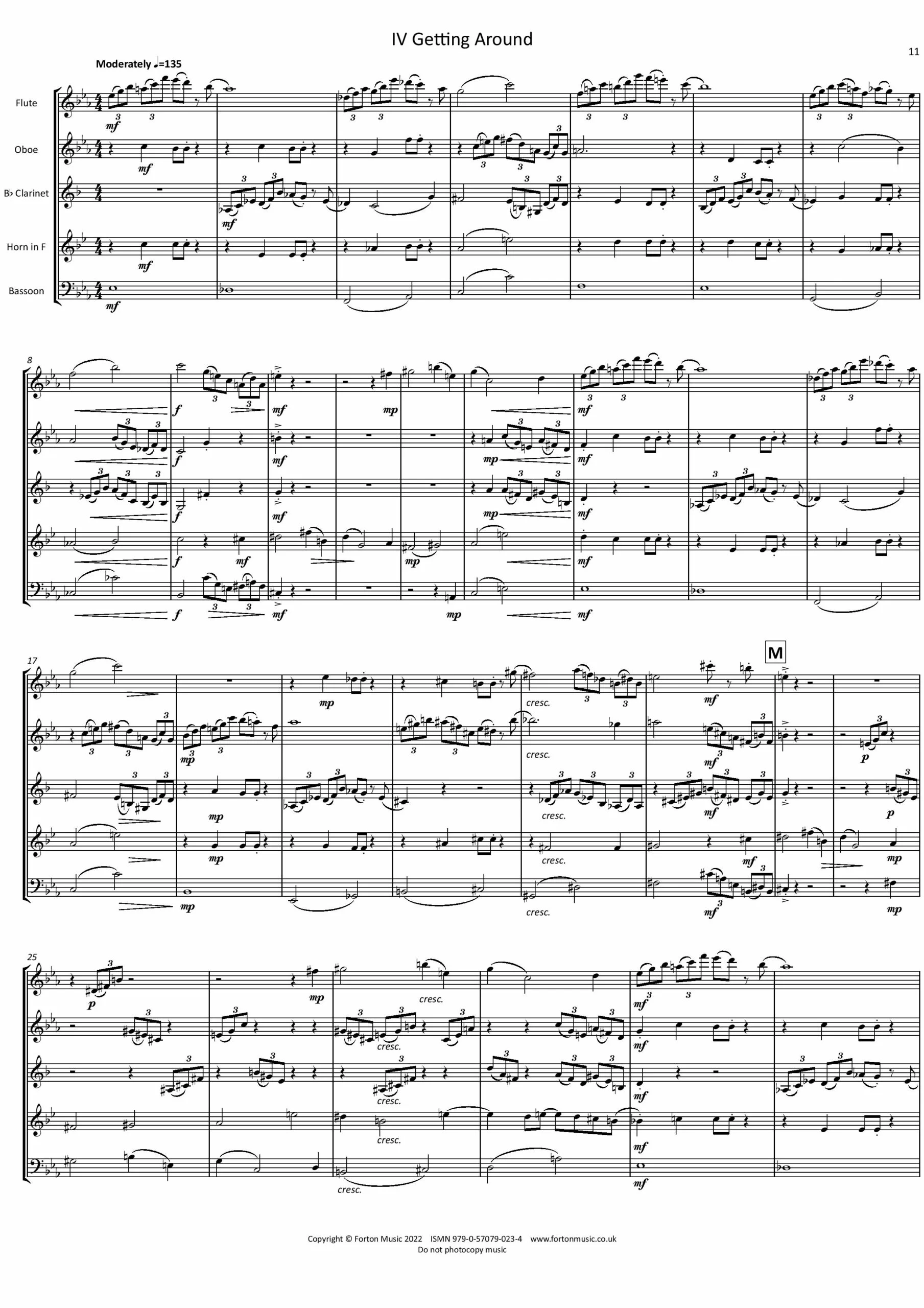 This suite, in five movements, was composed in the early months of 2021. It is my first wind quartet, if we exclude student works. Present are some of my usual “funky” rhythms and time changes, but I still would consider this suite to be of medium difficulty. I have tried to give equal importance overall to the different instruments. The second movement, “No Vienna” was inspired by the cancellation of a trip to the Viennese capital, and also vaguely recalls the “New Romantic” period of pop music of the early 1980’s. Those who know something of my work will be aware of my love of rounds, and elements of cyclic canon can be found in the first and fourth movements. Geoff Warren. Montesilvano, 2022