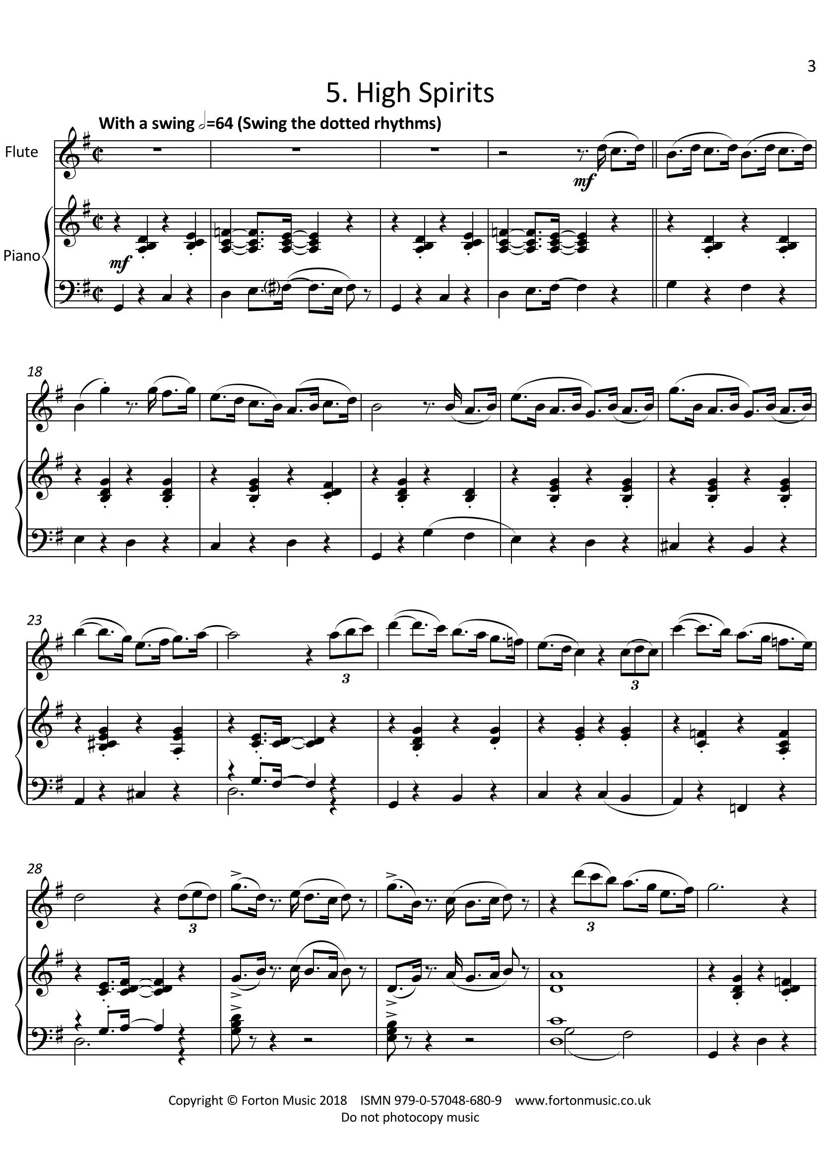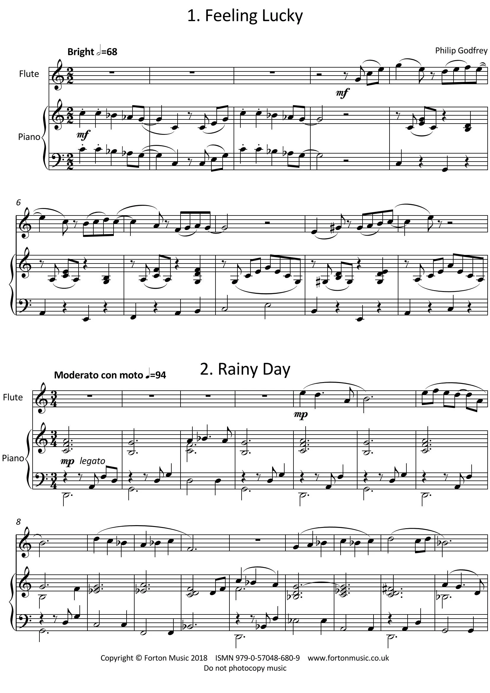 In my youth I often accompanied my sister, a flautist, on the piano. Over the years we played a wide variety of repertoire, and we always enjoyed ourselves – we didn’t give performances, we just played for fun. These Five Moods are inspired by memories of our youthful sibling music-making. The styles range from traditional waltzes to jazz/swing numbers, about grade 2-4 in standard.