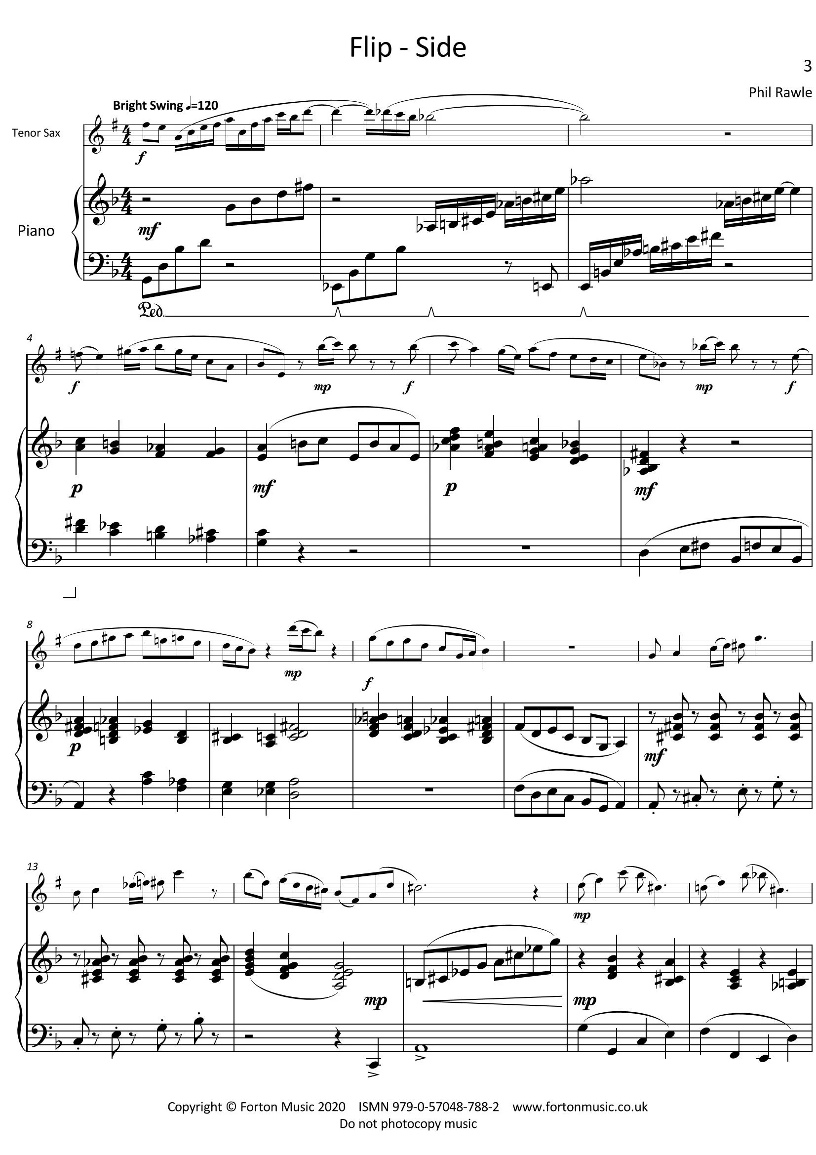 A piece full of contradictions and contrasts. Almost like Jekyll and Hyde – not knowing what it wants to be. It flips from stuttering swing to straight passages not quite sure whether to be major or minor, smooth or sustained, peaceful or angry but always moody. But no matter which side you favour, it needs to be played with commitment. The piano part is almost an equal partner and not just accompaniment.