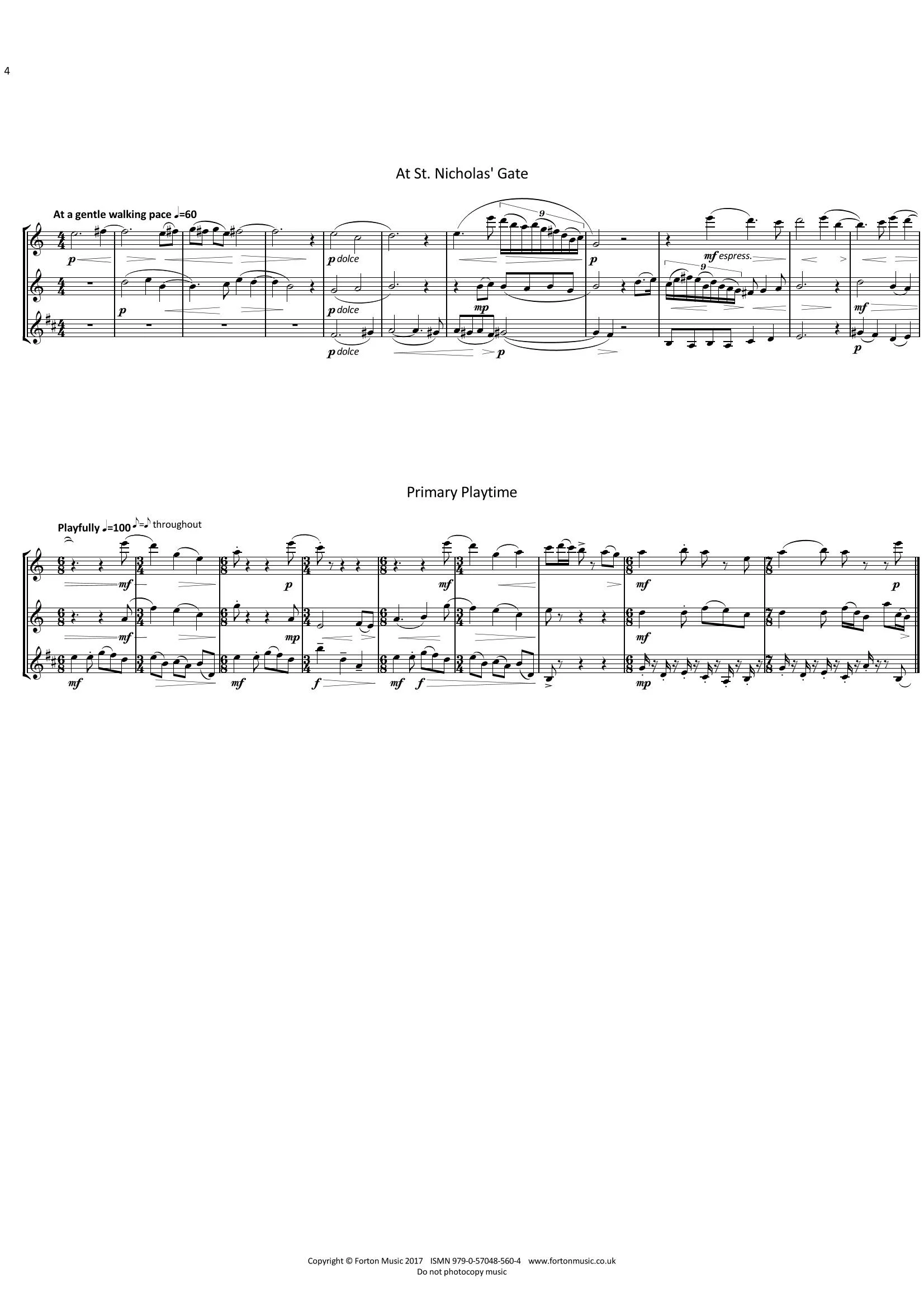 Finally, the active village primary school, full of energy, playfulness and learning. The shifting time signatures represent the variety of games at playtime, until the final bell brings the children back into lessons once more.