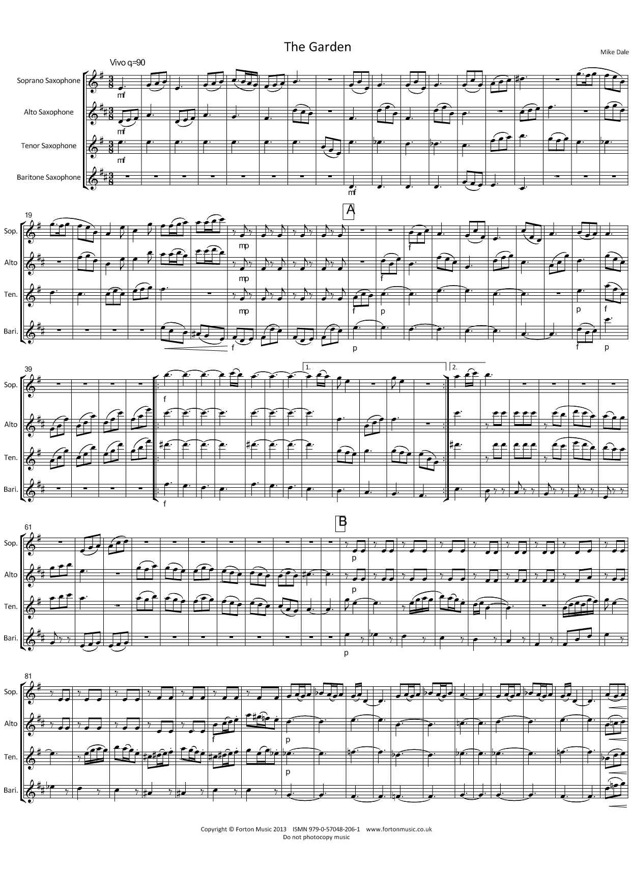 This piece is a rhythmic dance feel in 3/8, fairly light and fast with a folk feel. Some pastoral sections, but always requiring energy in the playing.