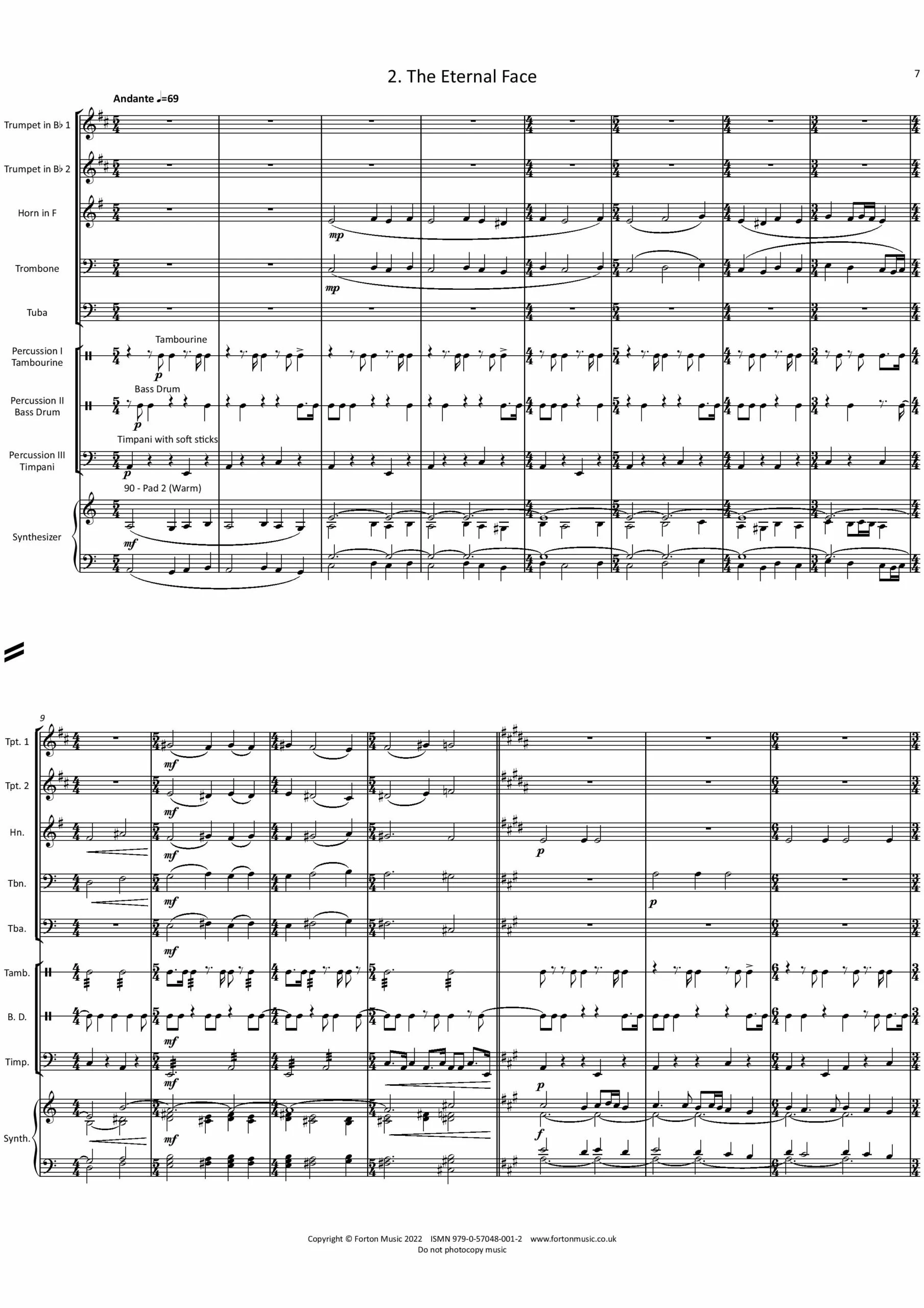 Little Mars Poems is a work composed as music for a sci-fi setting ballet. It consists of three movements that represent the vision of an ancient colonized Martian valley; the face of an immortal being; and the dance of a group of vestals emerging from the ruins of a temple. The performance involves the use of a brass quintet, three percussionists and a synthesizer or organ. The synth voices indicated are for General Midi instruments, but any similar sounds will be appropriate.