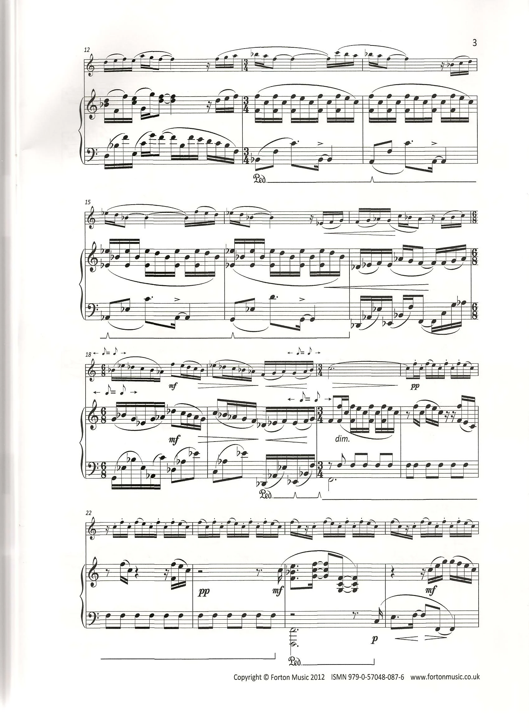 A one movement piece for oboe and piano from the pen of Vincenzo Sorrentino that makes the most of the crisp articulation of the instrument. Syncopated rhythms and modern harmonies add spice to this piece. Requiring nimble fingerwork (particularly in the demisemiquaver passages) and some stamina (142 bars long with few rests), this is a piece for the more able player that would make a great addition to the concert platform.