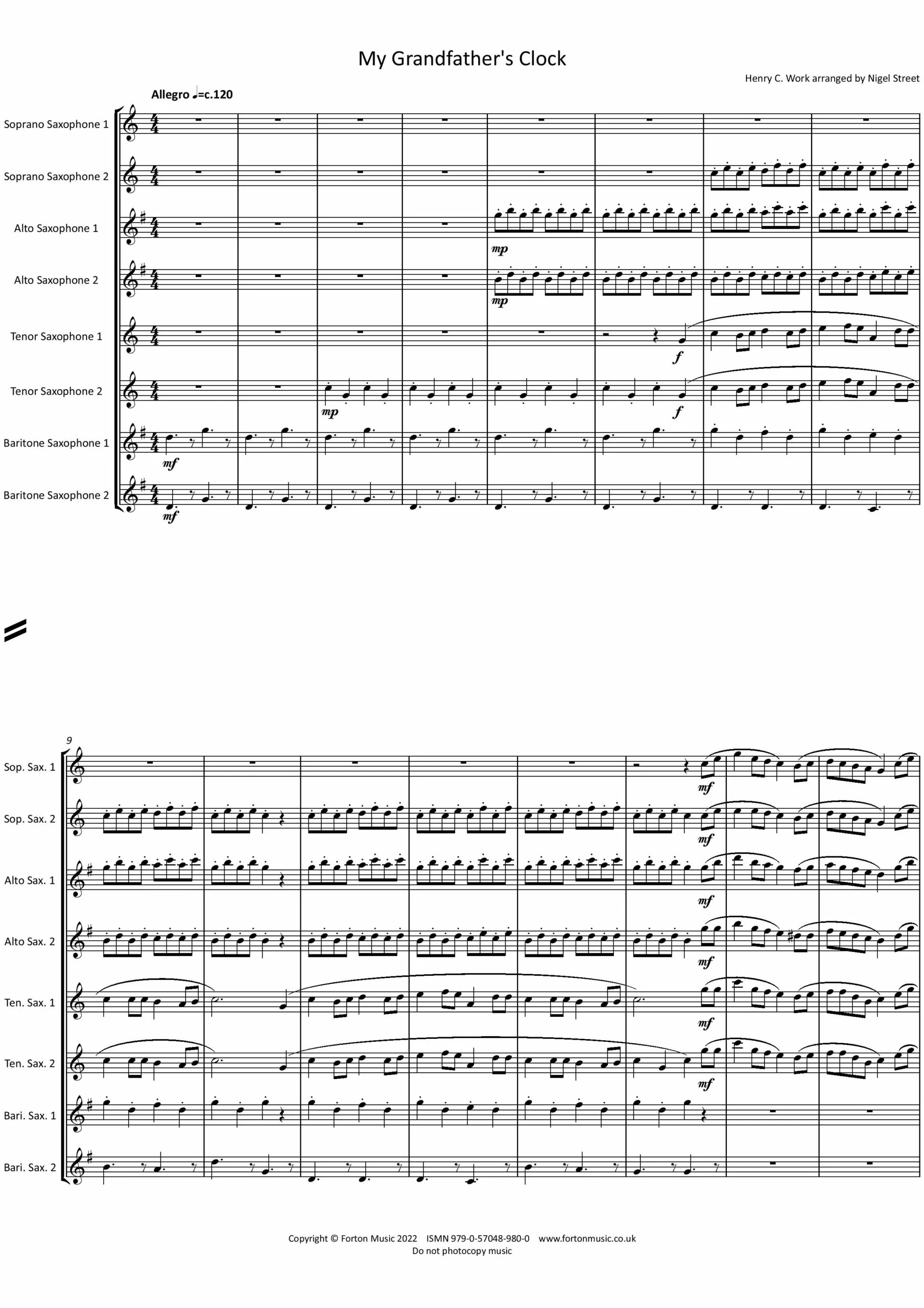 A well known children’s song which tells the story of the Grandfather clock that stops when the old man dies. Alternating fast and slow variations add to the interest.