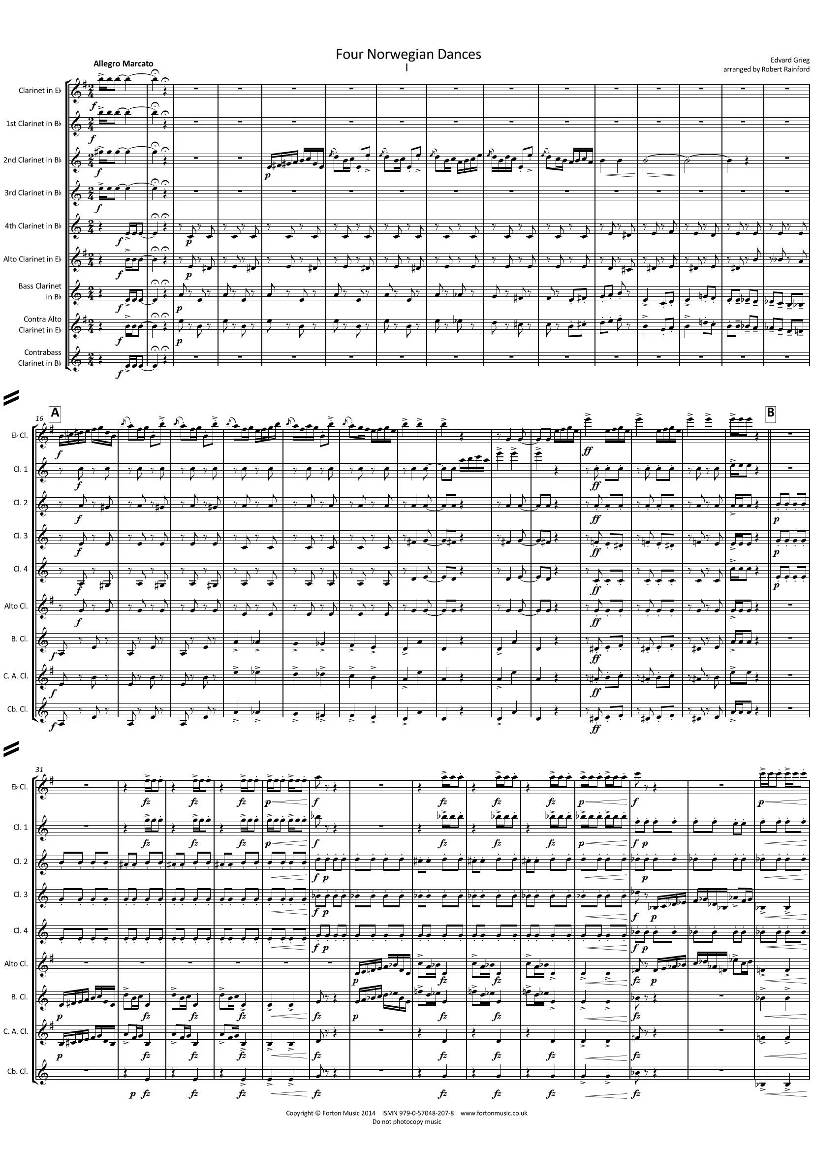 Composed in 1880 for piano duet, these four charming dances make a delightful addition to any concert. In four movements, the first and last of which are more extended compositions featuring varied tempi and moods; fast semiquaver sections alternating with slower sections of lush harmony. The fourth movement in particular gets faster and faster ending with an exciting Prestissimo section. The second and third movements are simpler, but no less attractive. All instruments have interesting but playable parts, with varying standards from approximately grade 4 upwards