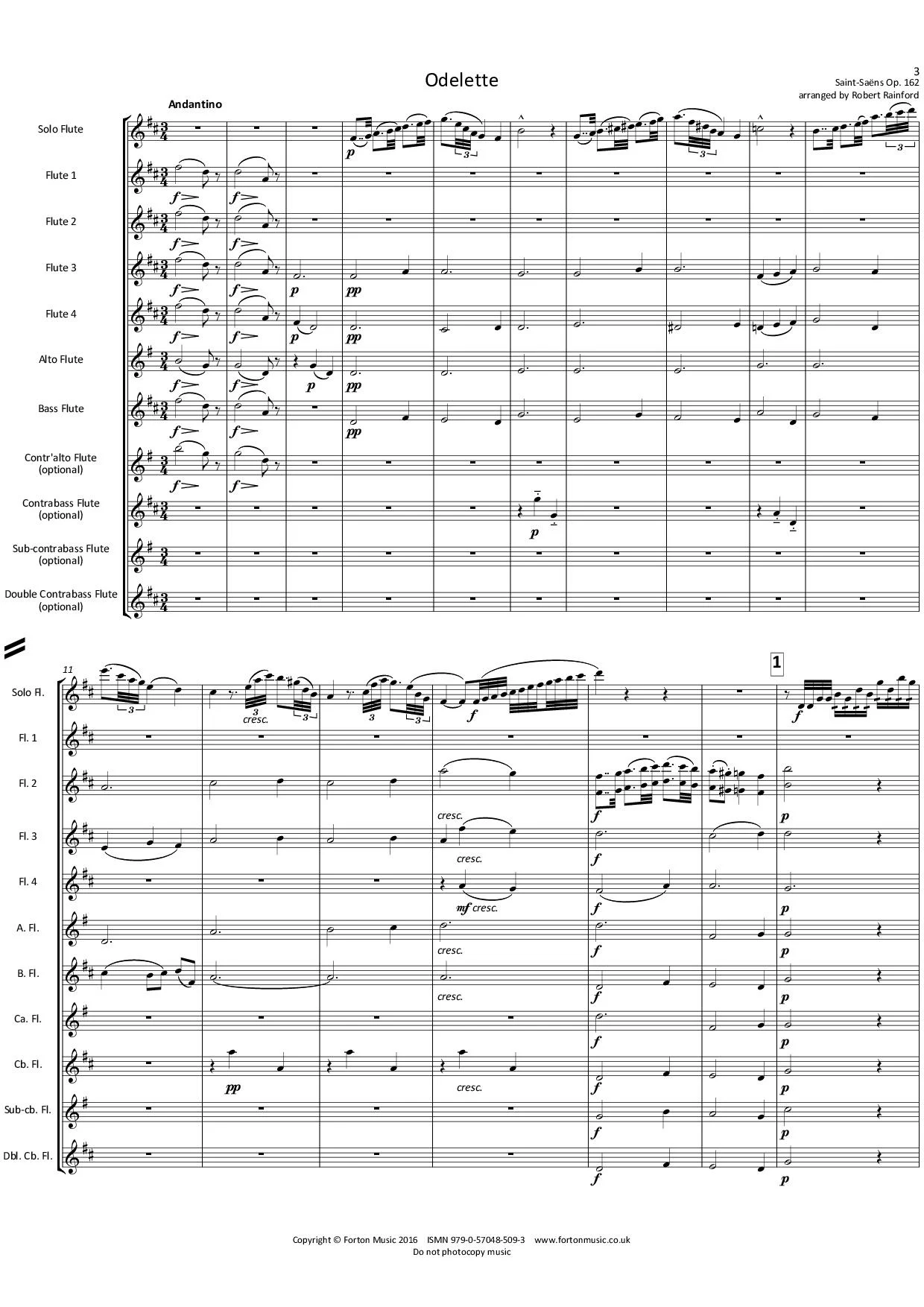 This is a piece that deserves to be much better known. As a single movement solo piece, it’s a great way for a player to begin to get some experience at playing in an ensemble situation. The solo line is demanding, but not excessively so. The ensemble parts are generally straightforward, first flute needs to be a confidant strong player.