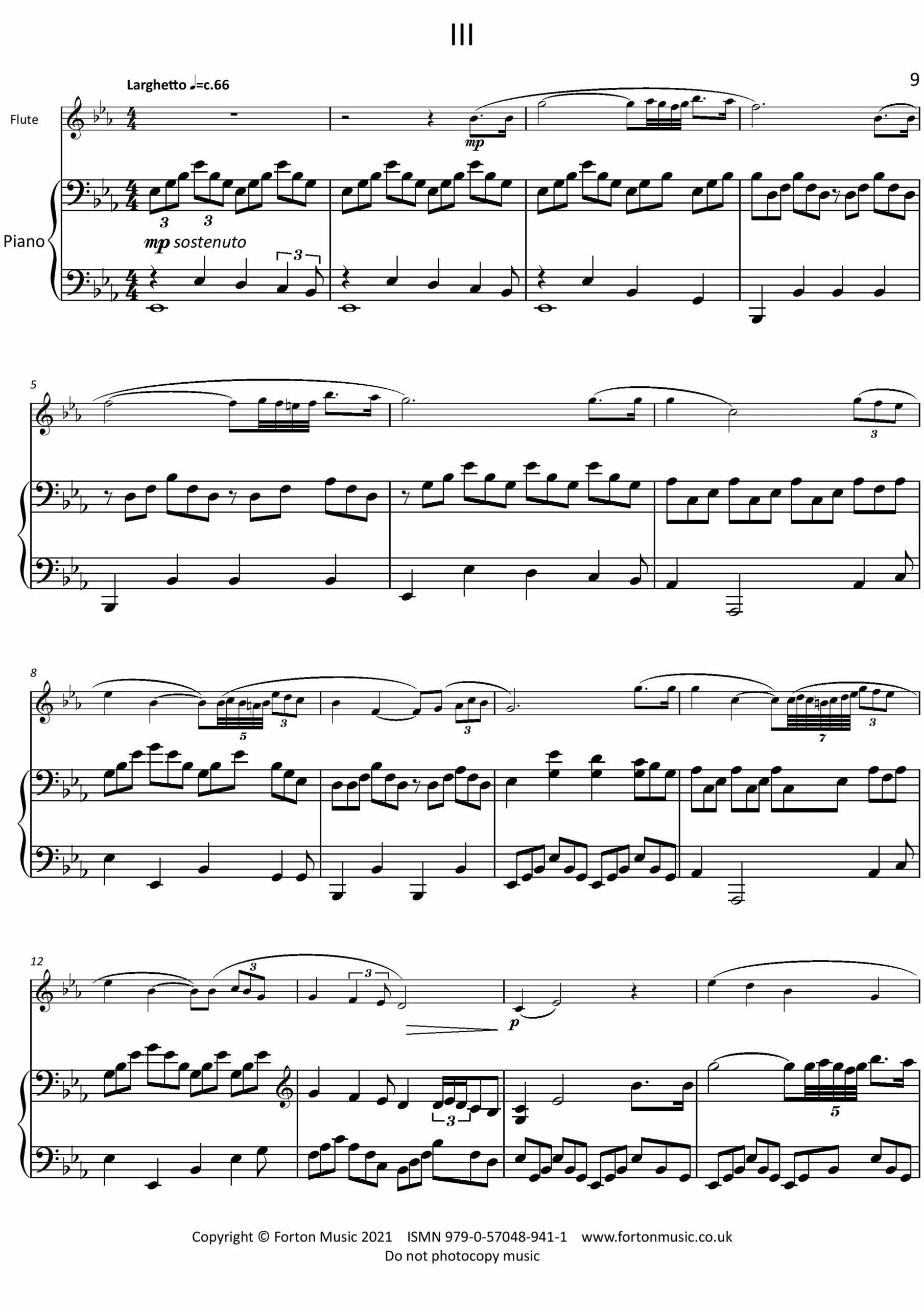 Quattro Canzoni for flute and piano is an expressive and sometimes introspective work, always lyrical, and reminiscent of 19th century salon music. Written in 1984, this early composition is dedicated to Scott Borrelli. Performance time is 14 minutes.