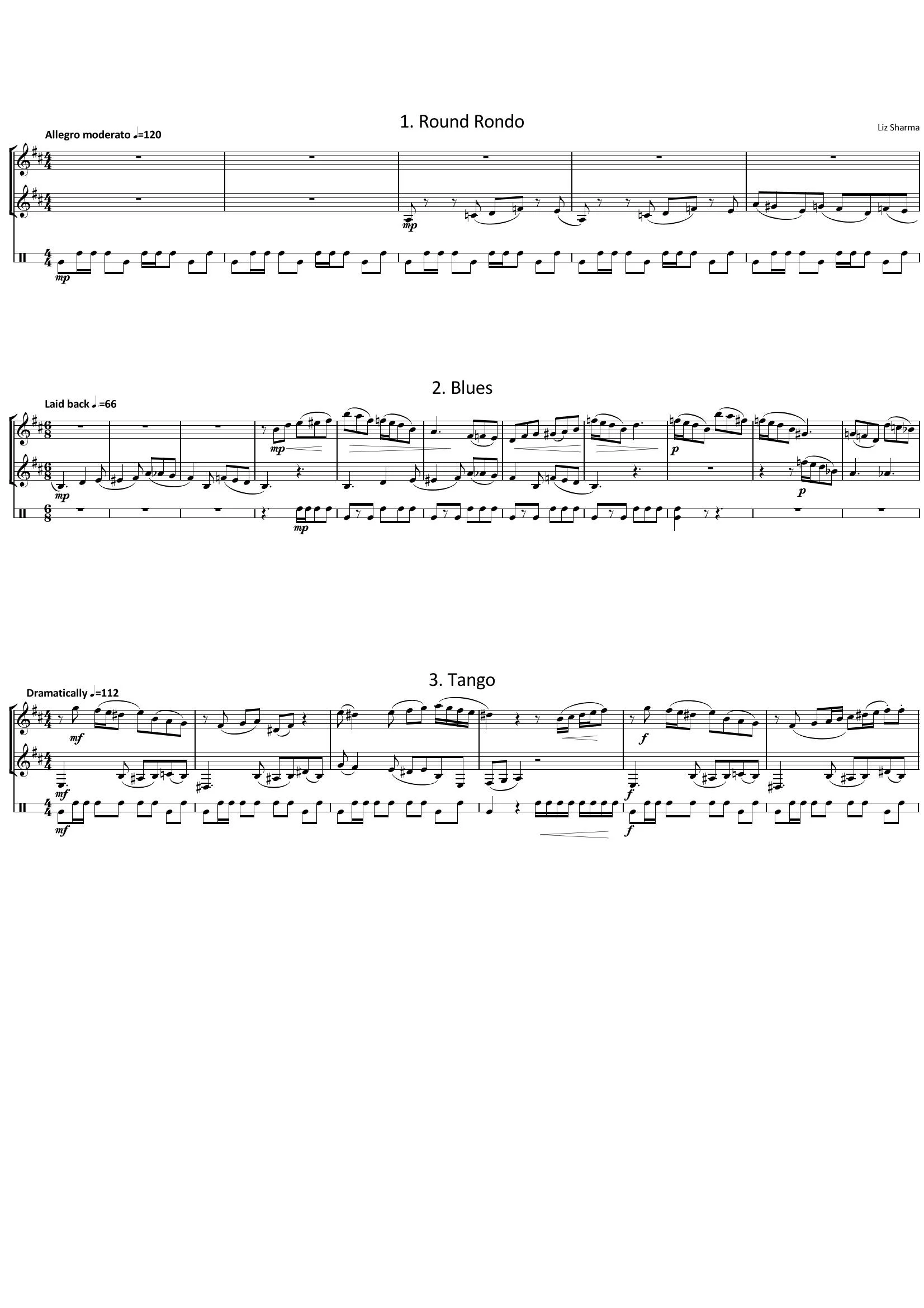 This set of pieces was first performed at a London Composers Forum concert in London in July 2016. On this occasion the pieces were played on alto & baritone saxophones, although they were written for clarinets. These are lighthearted pieces, and the drum part makes the combination more unusual and emphasizes the dance styles.