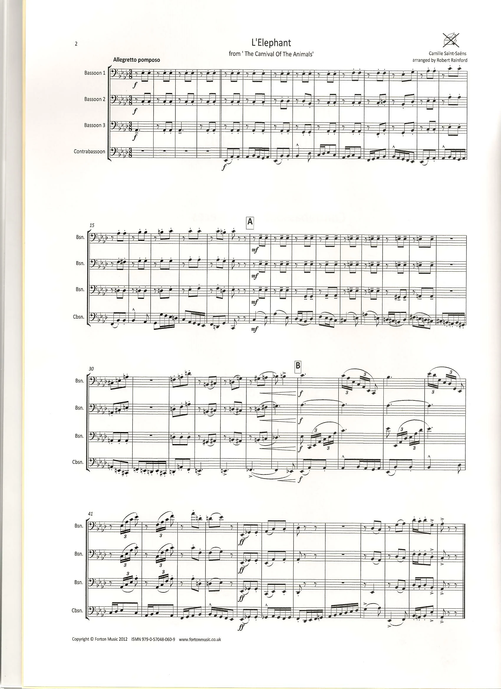 Three show pieces arranged for solo contrabassoon and three bassoons: