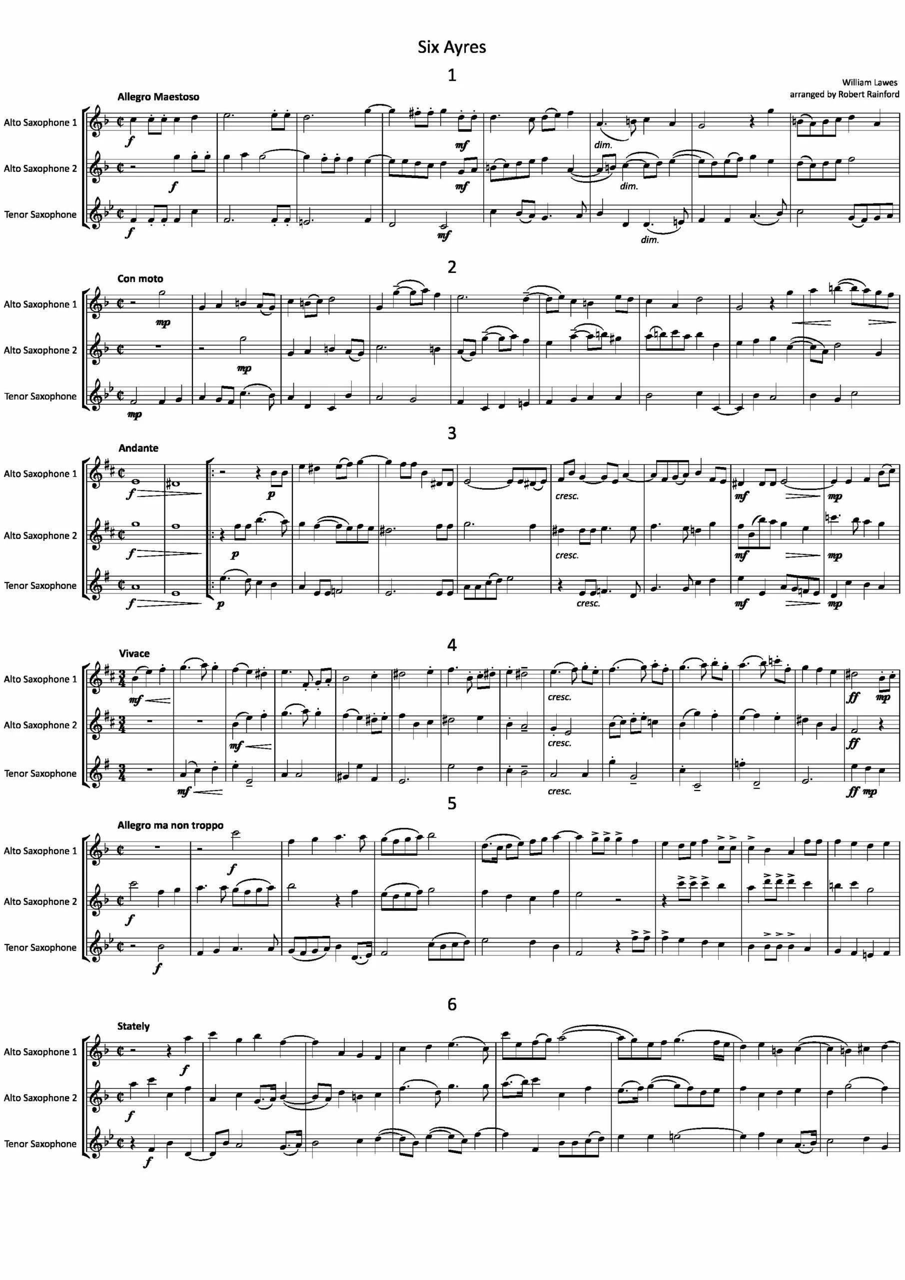 These six Ayres comes from William Lawes consort music, and were originally written for three viols. In this edition, the phrasing and dynamics are all editorial, and the notation has been modernised.
