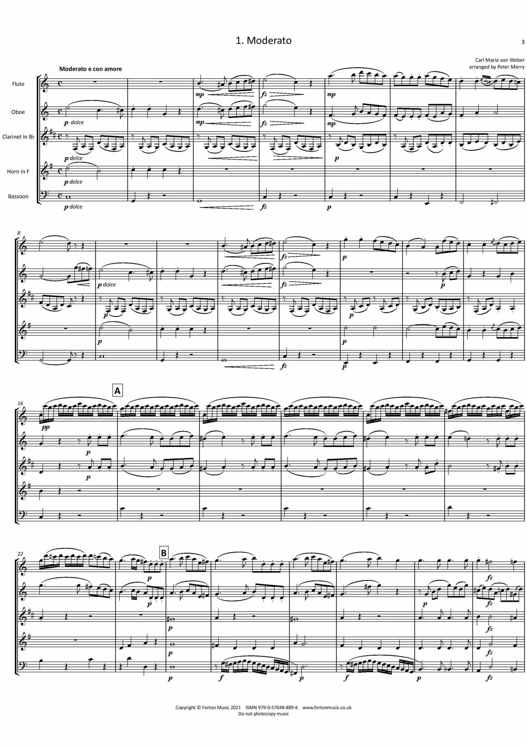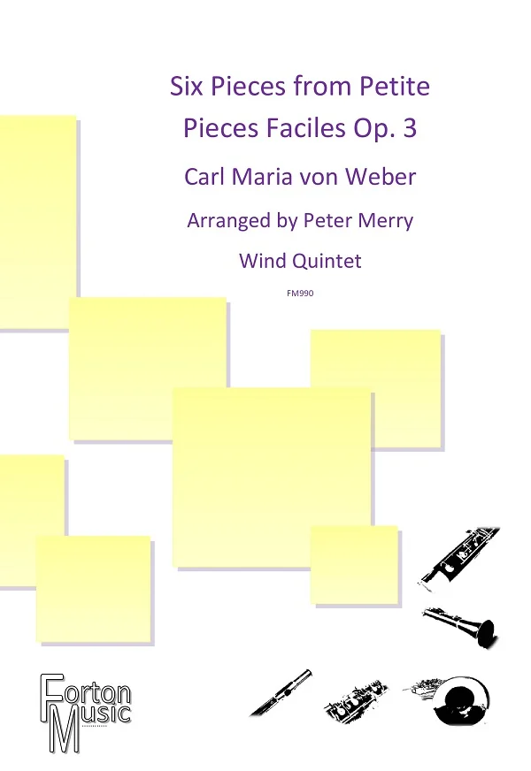 These are arrangements of Weber’s first set of Petites Piéces Facile for piano duet written in 1802, when the composer was just 16 years old. Though simple in pianistic technique they explore a rich harmonic language and sense of drama which hints at the highly original operatic composer to come. Paul Hindemith later used themes from these duets in his Symphonic Metamorphosis for orchestra which he wrote in 1943.