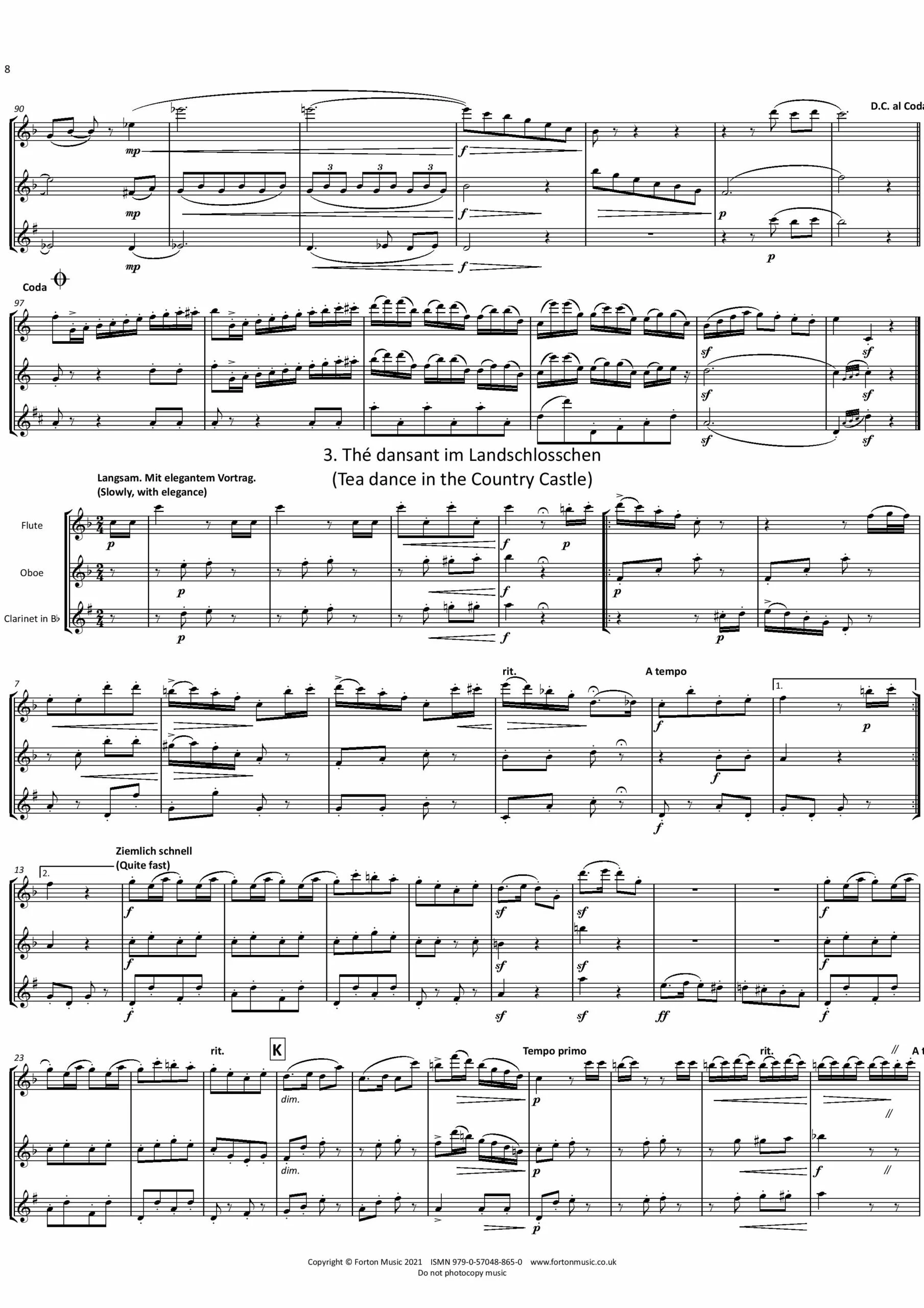 Christian Julius Weissenborn (1837-1888) was a German bassoonist, teacher and composer. Born in Fridrichs-Tanneck, he was principal bassoonist of the Leipzig Gewandhaus Orchestra from 1857-1887. He also taught at the Leipzig Conservatory from 1882. He is chiefly remembered for his educational compositions ‘The Practical Bassoon School’ and ‘Bassoon Studies op. 8’, which are still widely used today. He died in Leipzig, aged 51. These trios were originally composed for three bassoons, and are here presented in an arrangement for a mixed wind trio. They are beautifully crafted pieces using the fashionable dance forms of the day, so there are waltzes, polkas, and mazurkas to be found in these six trios. Other character pieces also make appearances, so there is a Turkish March and a Funeral March. Just using three musicians, the composer conjures up bustling ball rooms, elegant soirees and military sounding marches. All three parts contribute equally to the music.