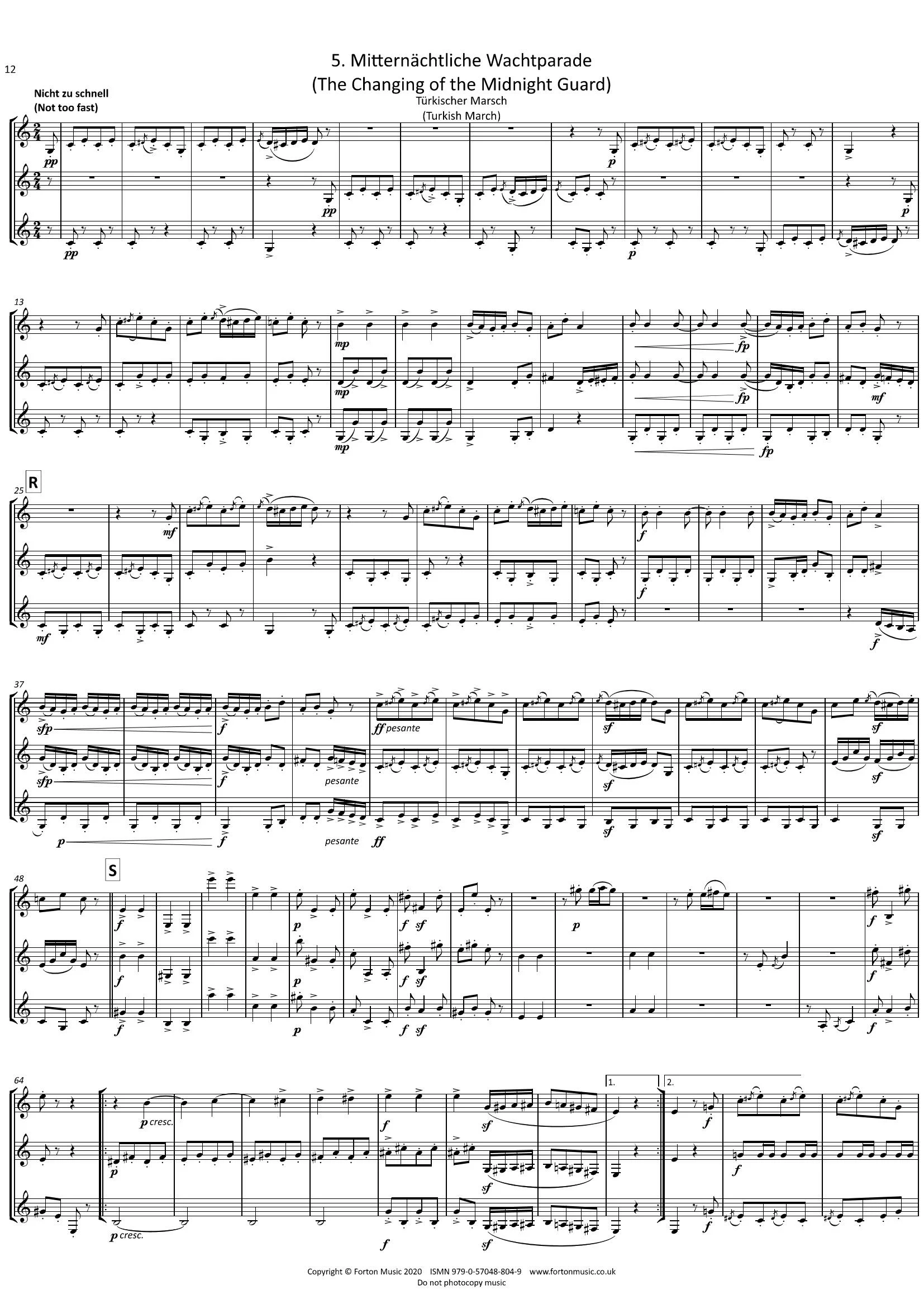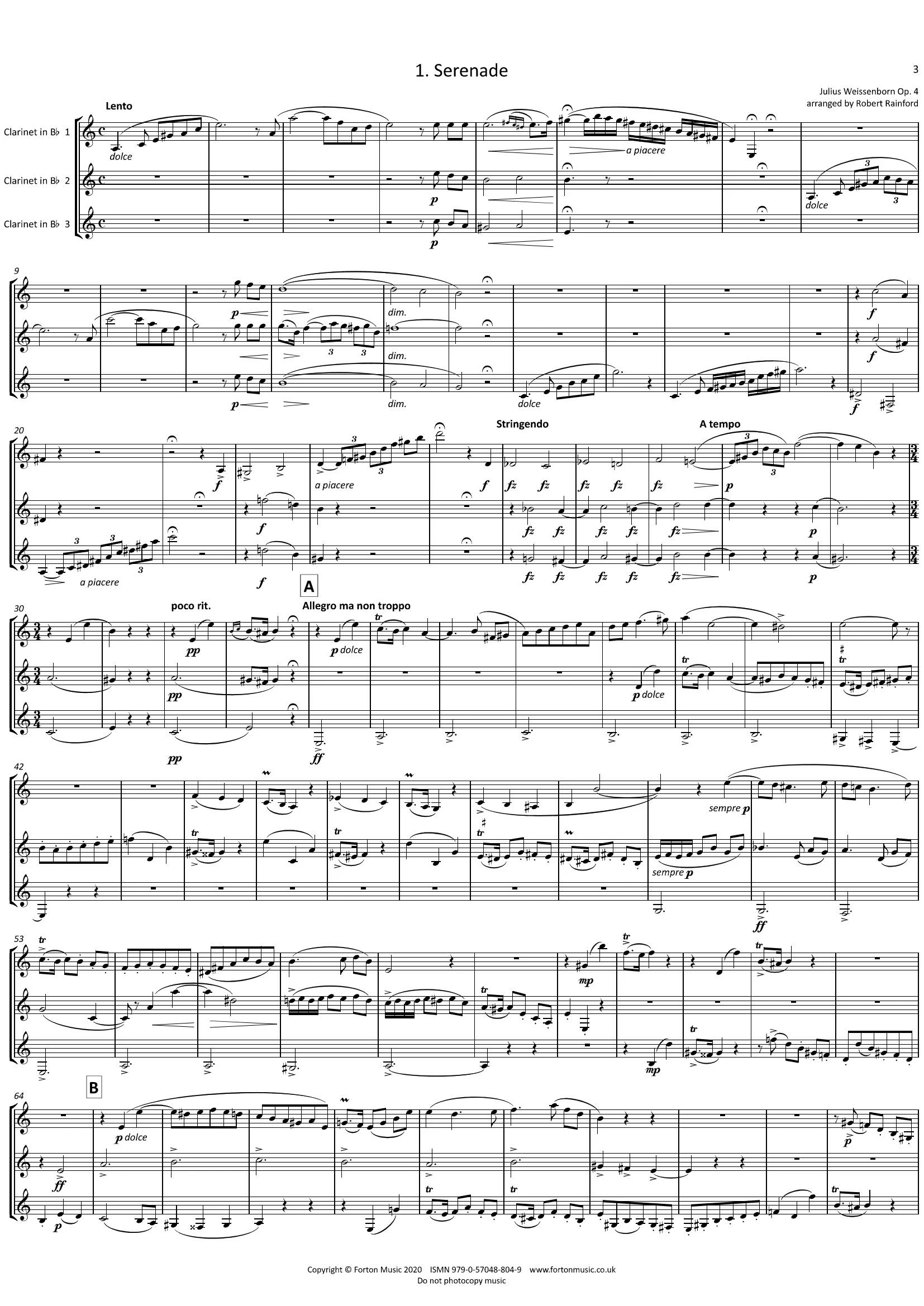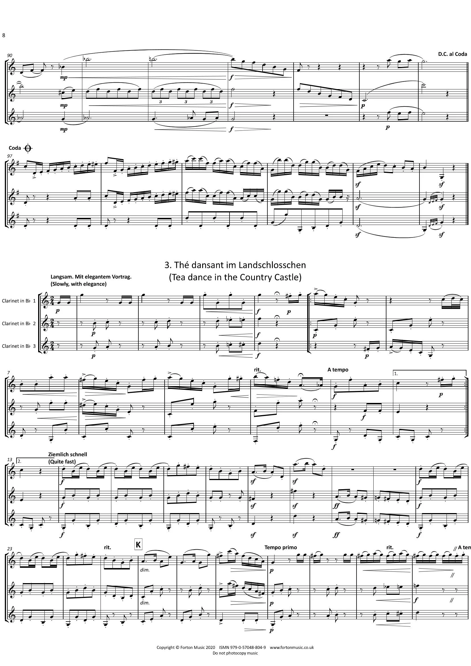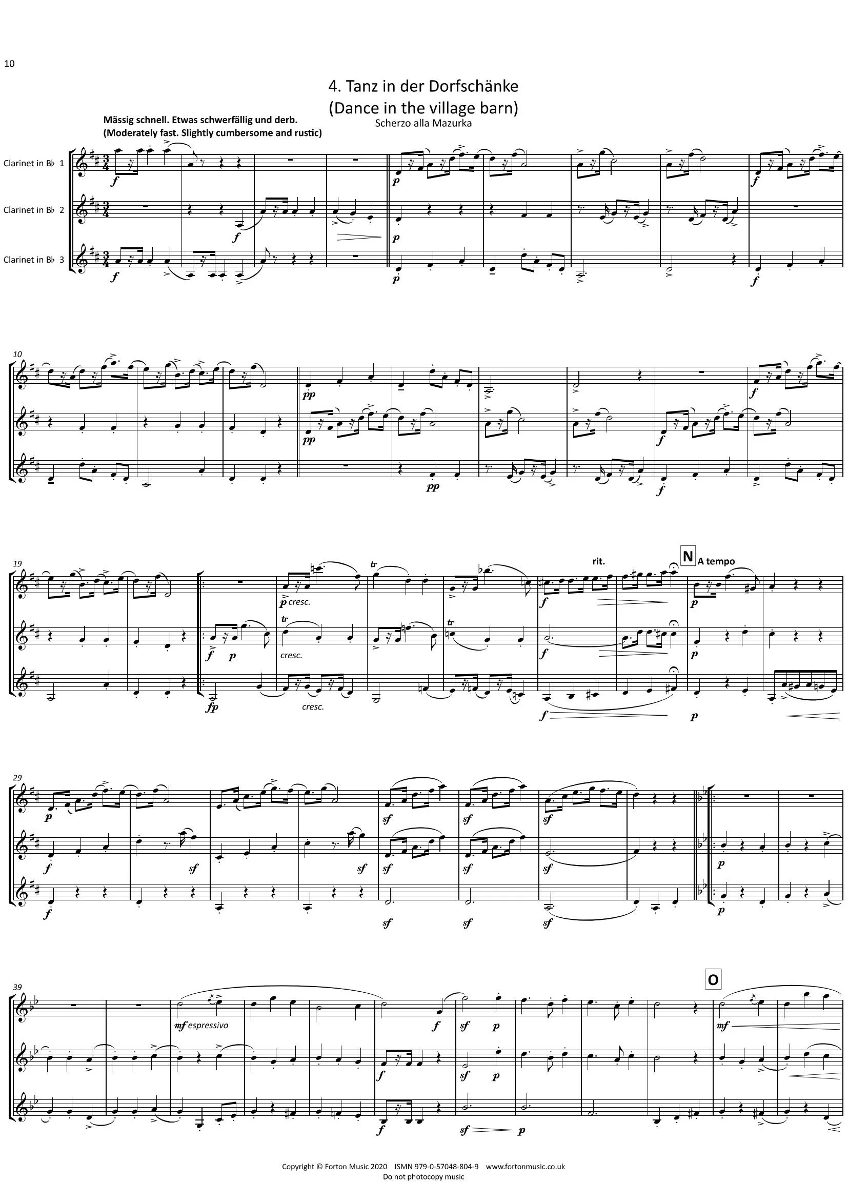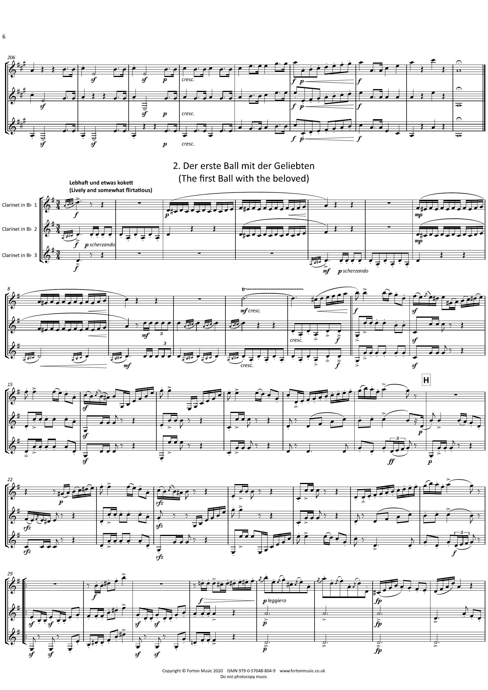 Christian Julius Weissenborn (1837-1888) was a German bassoonist, teacher and composer. Born in Fridrichs-Tanneck, he was principal bassoonist of the Leipzig Gewandhaus Orchestra from 1857-1887. He also taught at the Leipzig Conservatory from 1882. He is chiefly remembered for his educational compositions ‘The Practical Bassoon School’ and ‘Bassoon Studies op. 8’, which are still widely used today. He died in Leipzig, aged 51. These trios were originally composed for three bassoons, and are here presented in an arrangement for three clarinets. They are beautifully crafted pieces using the fashionable dance forms of the day, so there are waltzes, polkas, and mazurkas to be found in these six trios. Other character pieces also make appearances, so there is a Turkish March and a Funeral March. Just using three musicians, the composer conjures up bustling ball rooms, elegant soirees and military sounding marches. All three parts contribute equally to the music.