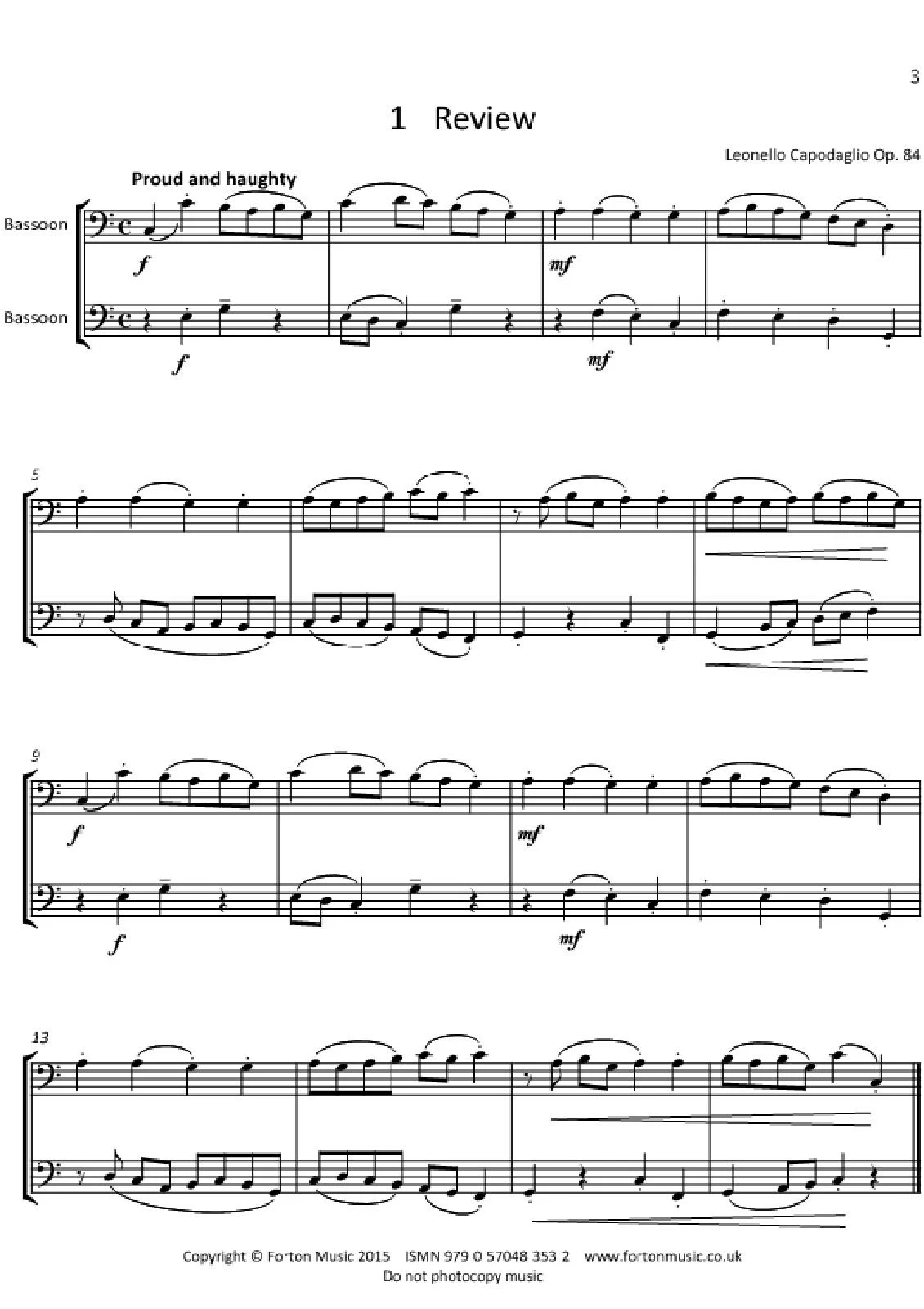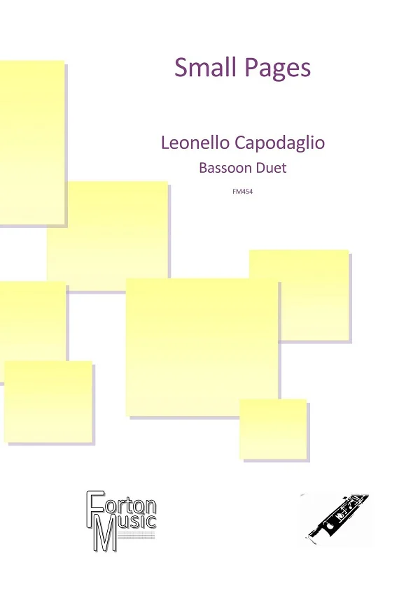 These nine pieces for two bassoons, gathered together in the collection called ‘Small Pages’, are characterised by accessible modern harmonies and structures, and even some humorous in-jokes. Technically not difficult, but with some interesting touches. The climax of the series is ‘Ariadne in Labyrinth’, with it’s long slurs and unison octave passages where the level of interpretation and imagination reach a certain virtuosity.