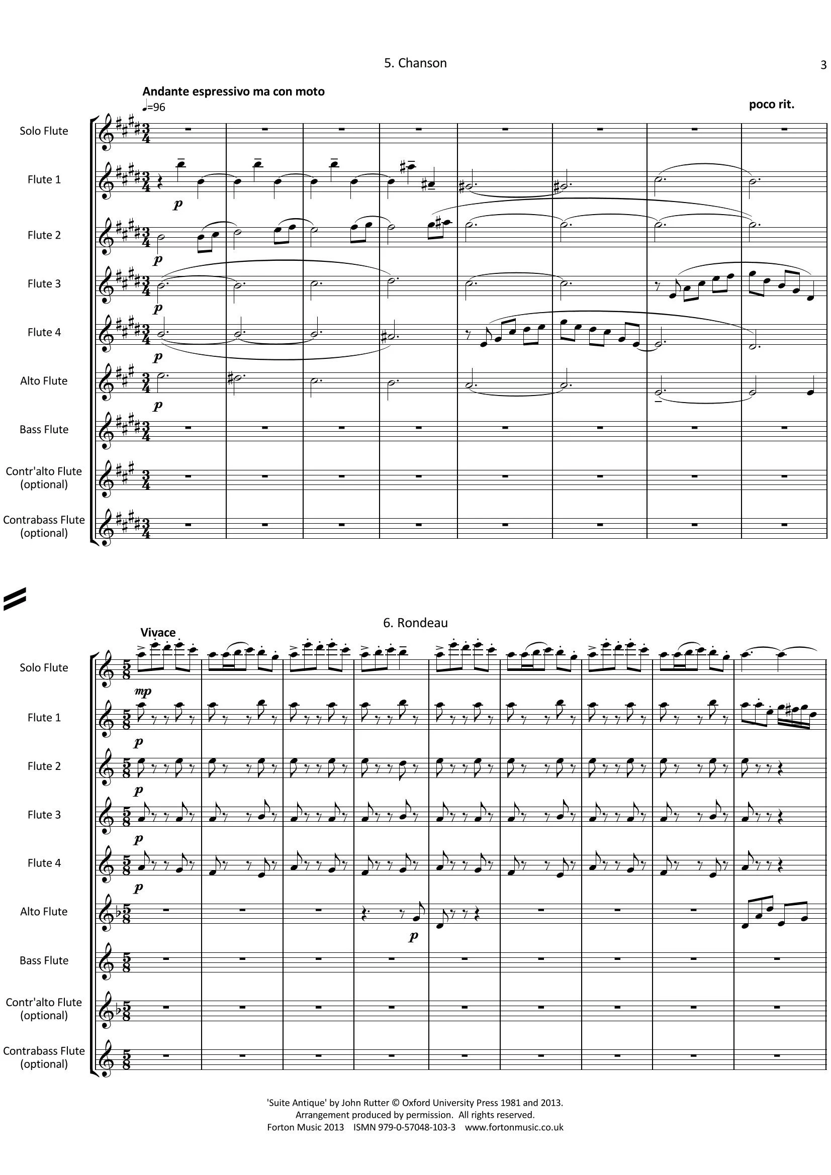 Solo flute, 4 flutes, alto flute, bass flute, optional contr’alto flute, optional contrabass flute