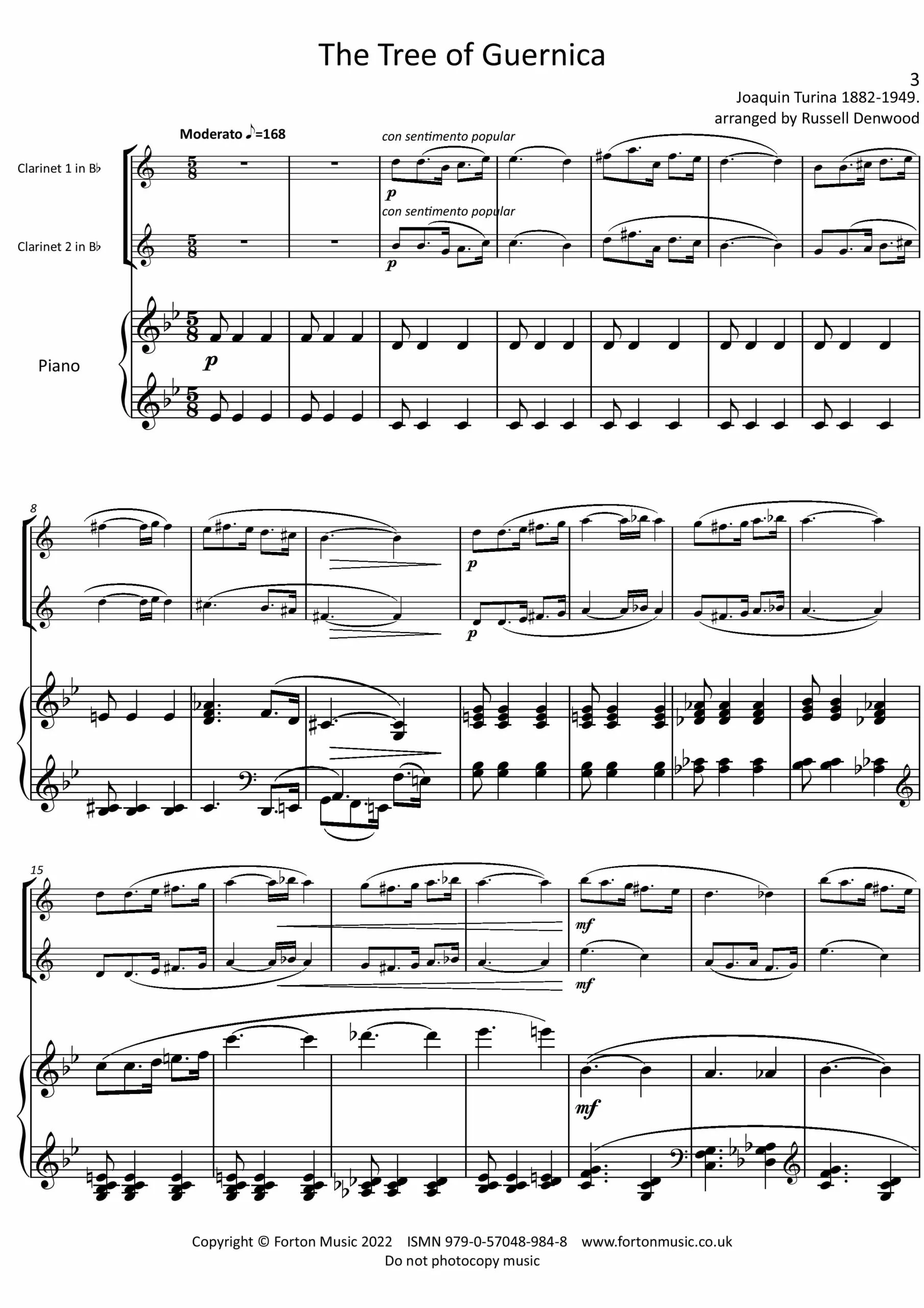 Turina (1882 – 1949) wrote this piece for piano solo in 1927. The tree in the title is a well known landmark in the town of Guernica in Northern Spain (the capital of the Basque country). It was used as a meeting place for the whole area (rather like an informal parliament). The coat of arms of the Basque Region features the oak tree as a major part of the design. The piece was written 10 years before the infamous bombing of the town in the civil war, of which Picasso made a famous mural. The music is in 5/8, giving it an unusual “Spanish” lilt, describing perhaps calmer times in the town. The style of the music reminds one of Manuel de Falla and especially of Ravel (the piano trio of 1914). Ravel was by birth a Basque, being born in St.Jean de Luz (40 Km to the East of Guernica). Turina seems to have captured the quiet uniqueness of the area in this piece.