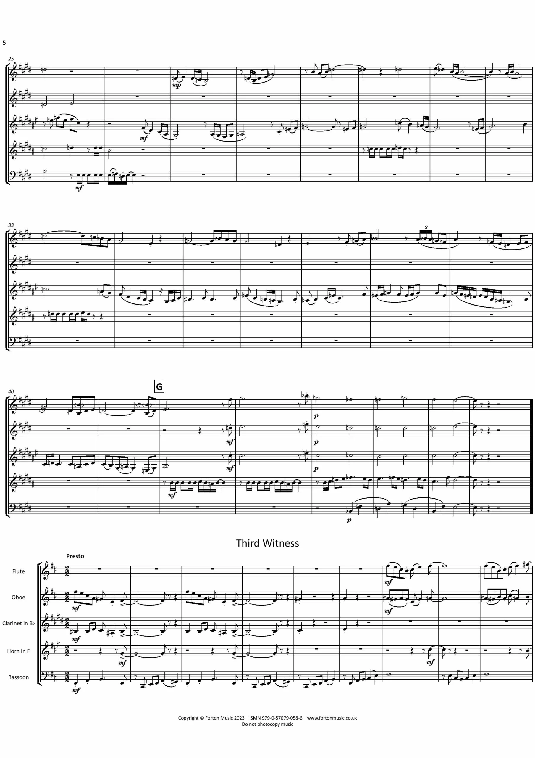 As is well known, different viewpoints from the same event can differ considerably. In this music, the accident of the title is represented by the prevailing harmonic structure. The witnesses are represented by the variations which occur within the harmonic structure of the three movements.