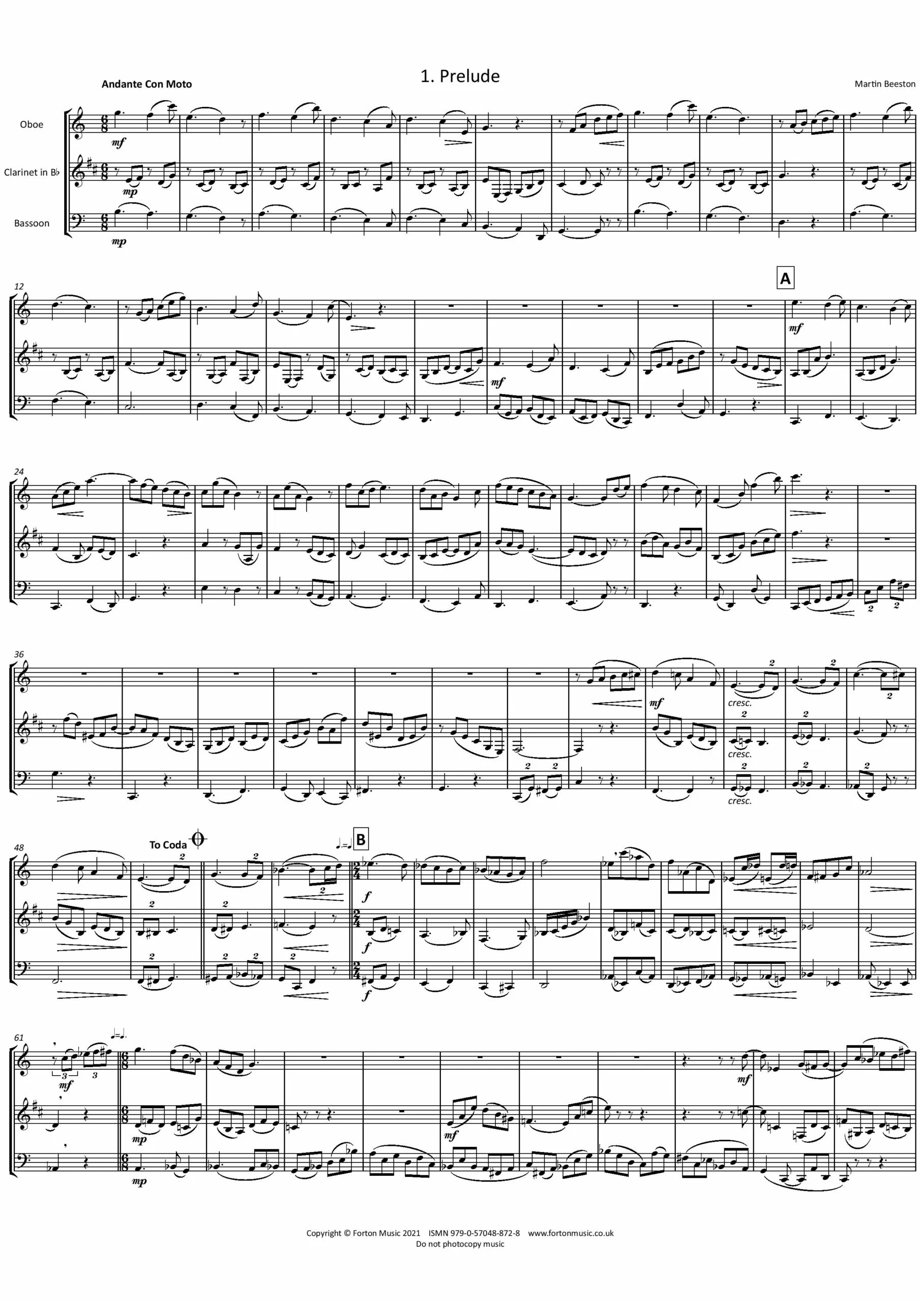 A four movement trio for an unusual combination of instruments. A variety of styles and moods are portrayed throughout.