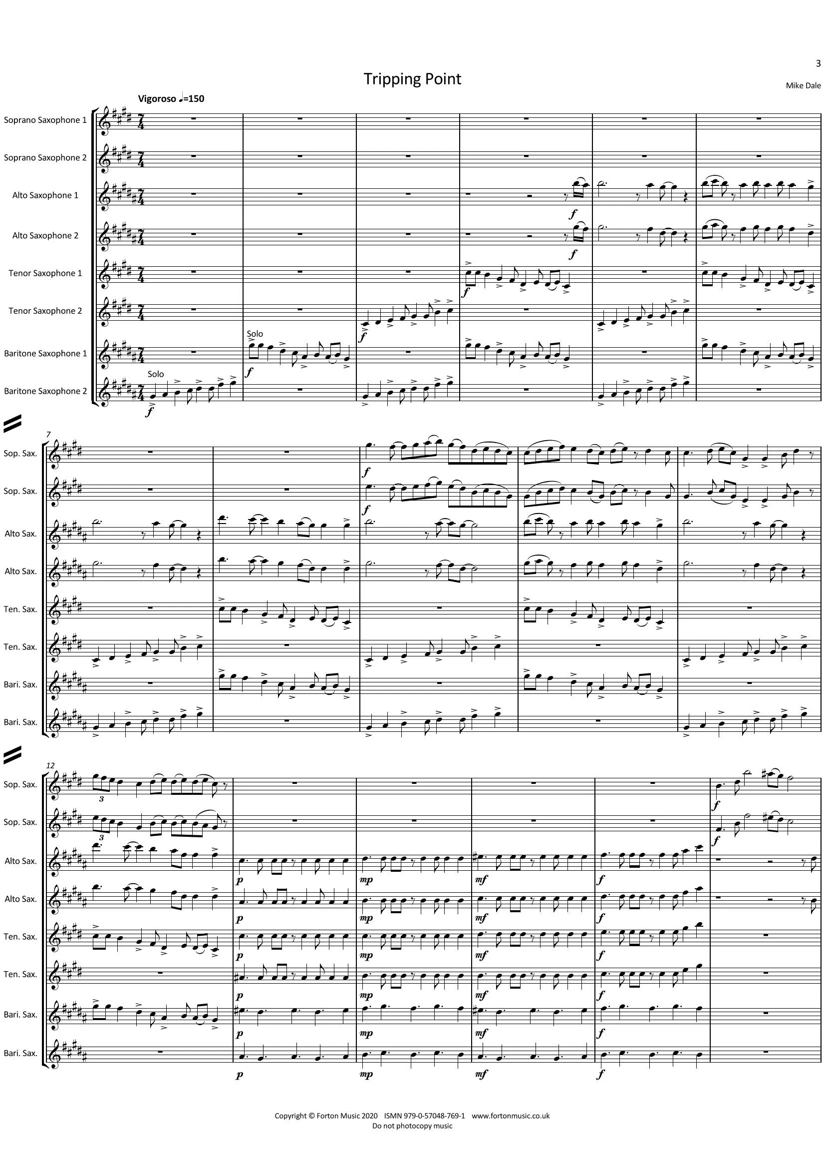 7/4 can be a challenge to play with conviction for those who are not used to it (hence the title), but I feel the rewards are worth it. The Baritones set the scene, with a question and answer section giving a driving feel. The higher instruments join in in pairs, with contrasting themes and rhythms, creating a layered effect, while keeping the energy levels up. This piece contains many rich harmonies and contrasting rhythms, while still being very melodic. Towards the end, there is a slightly faster section, before a quieter relaxing contrast to end. This piece needs to be played with rhythm and energy, without being distracted by the contrasting rhythms on the other parts.