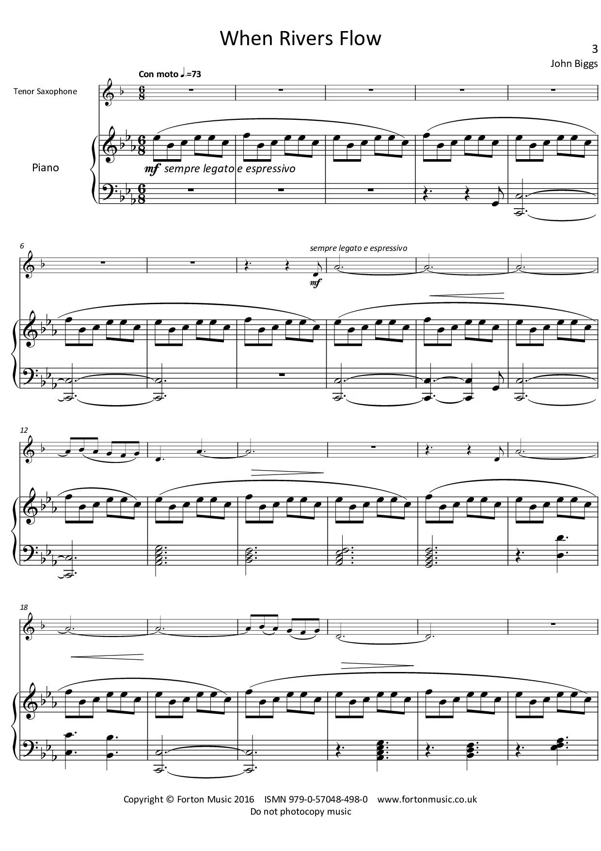 The title refers to the way aspects of nature resonate within us, and the sense of completeness we find when we connect in this way. ‘When Rivers Flow’ is a simple melody that sits on a rippling ostinato figure with various twists and turns in the piece. ‘Free As A Bird’ again is a simple melody that glides above a changing arpeggiated landscape of harmony. Both pieces are aimed at the developing intermediate player.