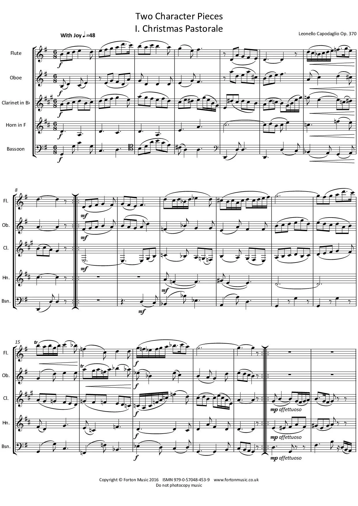This title combines two descriptive pieces with colour and style. The first is a Christmas pastoral with an archaic style; the second is a dance of spring pervaded by folk rhythms and more contemporary harmonies. All the instruments share in the music equally without their parts being too hard.